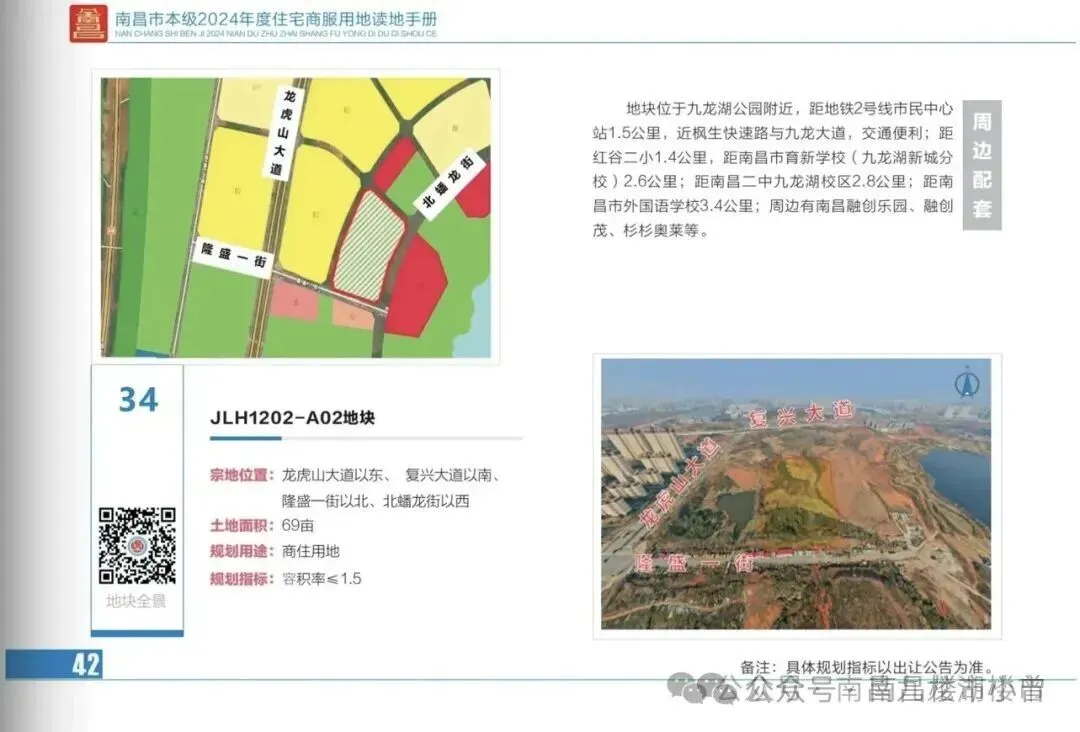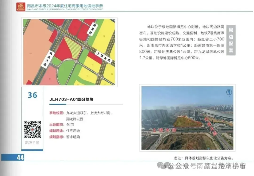 九龙湖703-A01部分地块,位于九龙大道以东,上饶大街以南,黄岗山路以西,地铁二号线鹰潭街站700米,调整为住宅用地占地46亩,容积率2.2,学区划分为南昌二中九龙湖校区(九年制),旁边就是绿地国博城商业综合体。