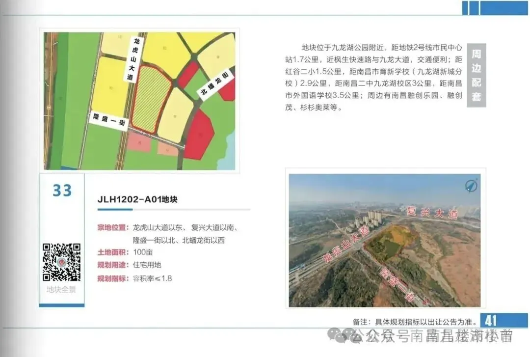 九龙湖JLH1202-B04地块,位于龙虎山大道以东,复兴大道以南【九龙湖公园西岸】占地67亩,商住用地,容积率1.5,东面4200亩九龙湖公园,目前没划学区。红角洲 HJZ702- O02 地块,位于西站大街以北,圭峰大道以西,婺源路以东,樟树街以南,地铁二号线龙岗站400米,为商业商务用地占地36亩,容积率2.2 ,东北角为师大附中新龙校区(九年制)拟引进巨汇博亚环球商业中心。