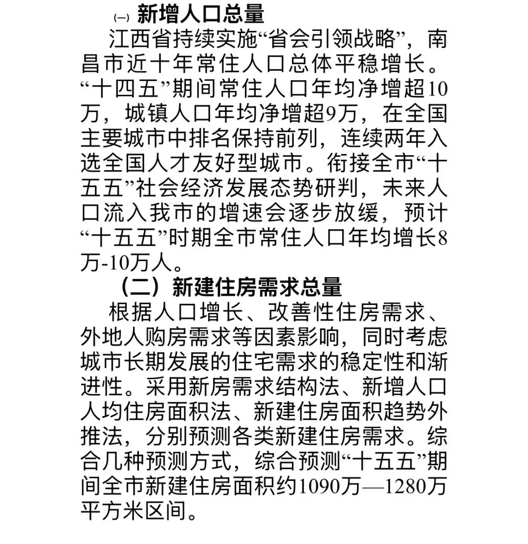 住房供给:新经济增长动能和市民对于好住房需求叠加,十五五期南昌将新增1090万-1280万平方米。
