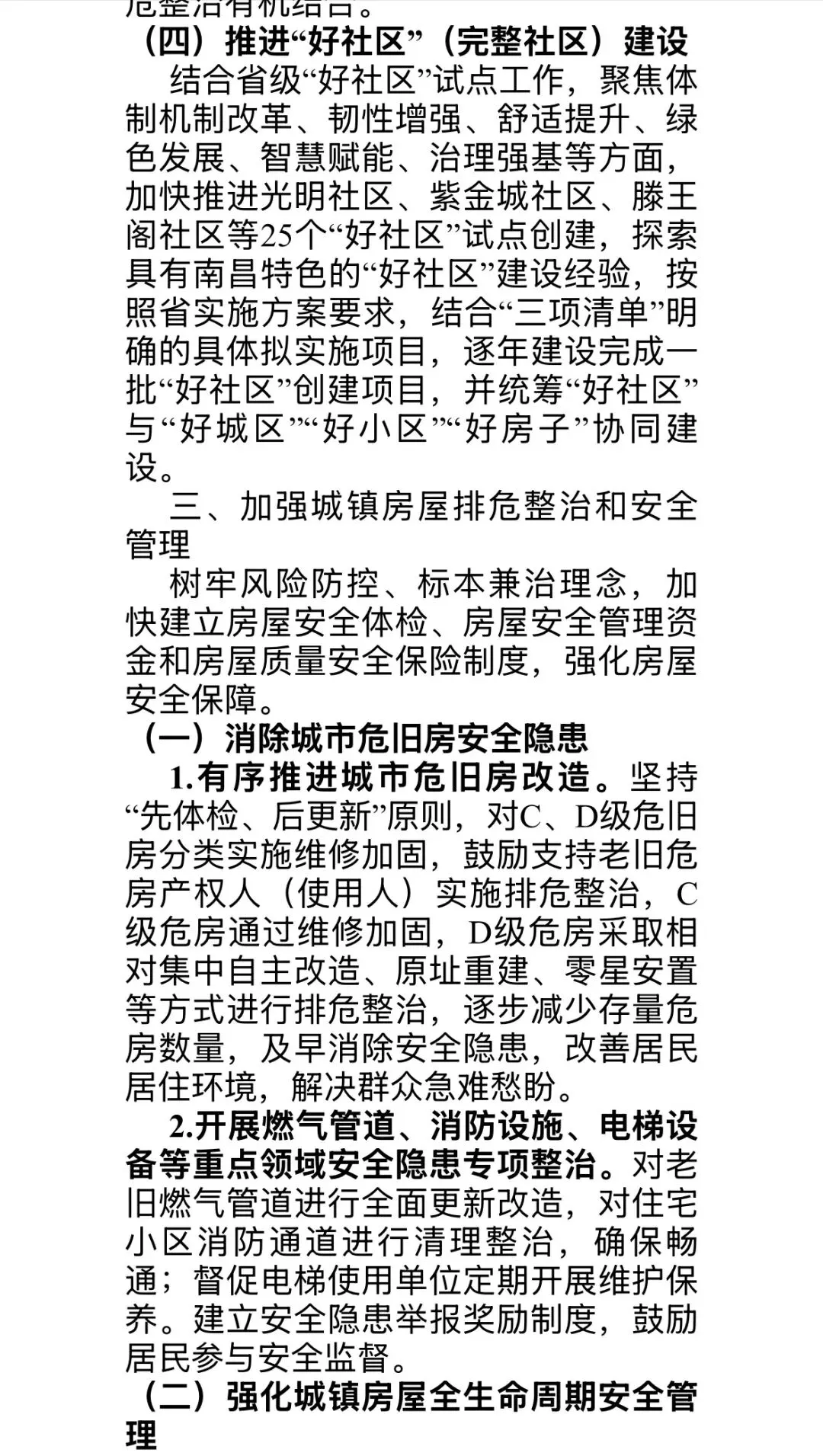 进一步推进城中村、危旧房改造和城镇老旧小区升级,加大城市改造和存量盘活。最后还提到加强物业服务质量等。