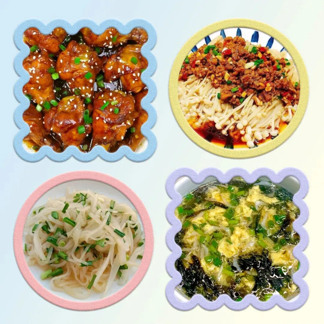 周二,红烧鸡腿,肉沫金针菇,萝卜炒虾米,紫菜蛋汤。