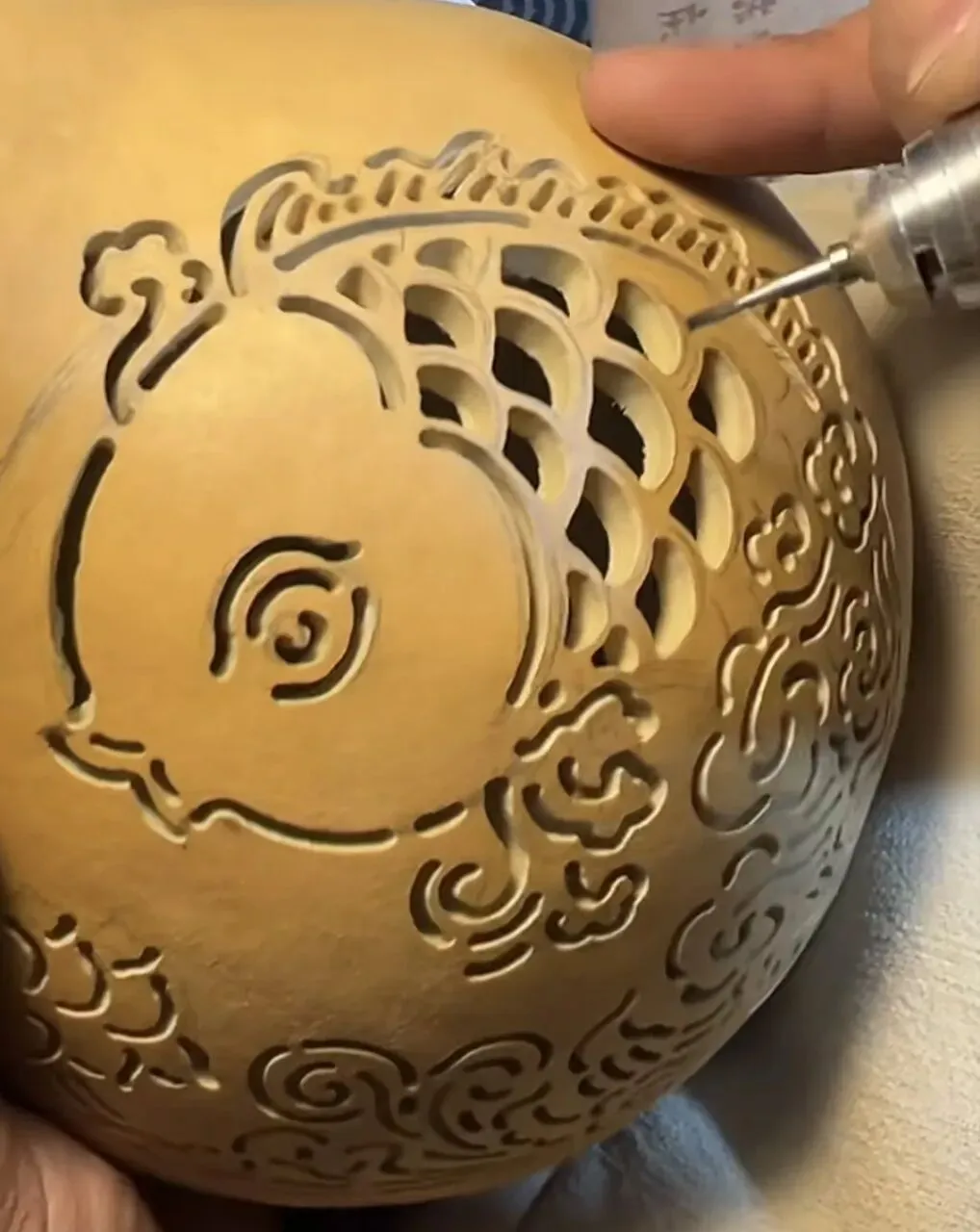 镂空雕刻则是在彩绘之前或之后进行,取决于设计需求。匠人先用铅笔在葫芦表面画出镂空图案的轮廓,然后以刻刀沿着线条进行切割。雕刻的技法包括透雕、浮雕、线刻等,根据图案的复杂程度灵活选用。