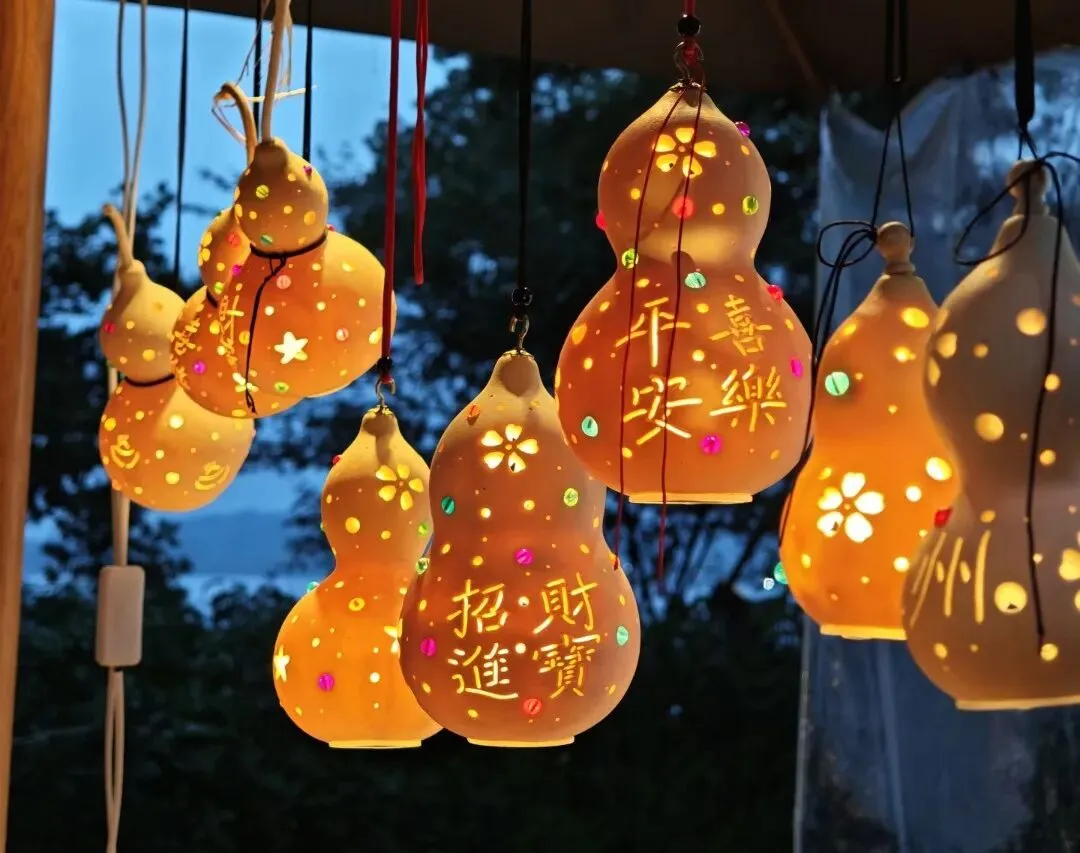 当所有部件组装完毕,点亮灯源的那一刻,暖黄色的光芒从葫芦内部渗透出来,彩绘纹样在光影中仿佛活了过来。一盏葫芦宫灯,就此完成了从田间葫芦到案头明灯的蜕变。