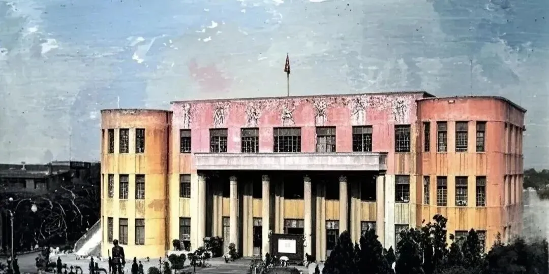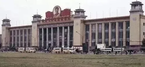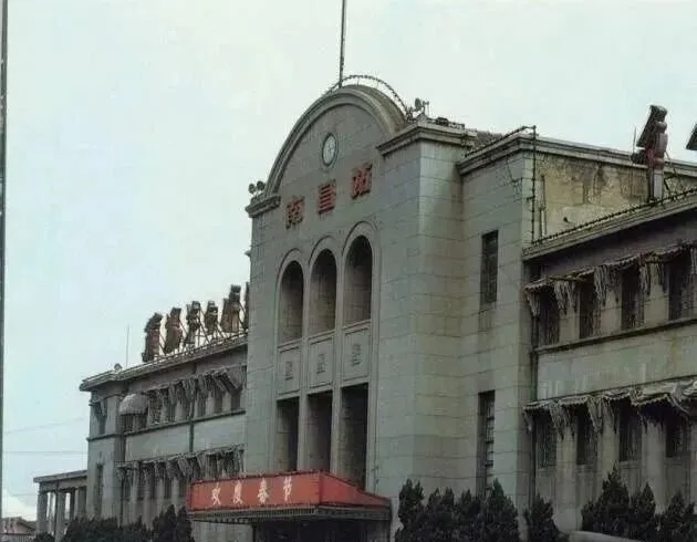 图中这幢气派的楼就是南昌火车站,门口大草坪还没铺上现在那种小方砖,只能看见一路老式公交横穿着过去,那会儿火车站好像总是一股子人来人往的劲,四个塔楼一左一右,顶上挂着大幅画像,一眼看过去正正经经,不光是南昌人认,外地来的出差也得在这合个影,这地方所有人的回忆都扎过根