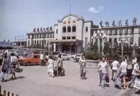 这张老照片里,火车站门楼圆拱顶上,一排红色雕像跟着天线往后排,广场上拉着大包小包的旅客,汽车队伍进进出出,小时候爸妈拉着去送亲戚出门,得提前催好几遍,怕拥堵,左边红色小轿车样式不多见,在八十年代能坐这种车那绝对算时髦货,广场上风一吹,夏天的热气加旅客脚步匆匆,都是那时南昌最热闹的看点