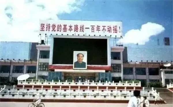 说起这块大广场LED屏,八十年代只有最重要的地方才敢挂上这样一面巨大的照片,中间毛主席头像下面还能站人合影,天蓝云白,广场四周一圈自行车,场中央宣传标语红底白字,小时候和老爸夏天傍晚来散步,小孩一会儿缠着打水枪,一会儿趴在栏杆边数石狮子,整个八一广场就是大家伙最喜欢晾人气和新鲜事的地方