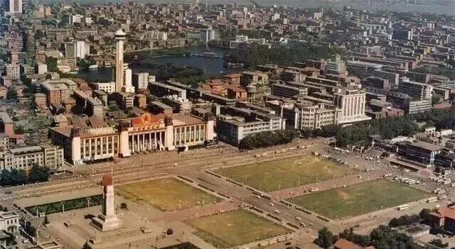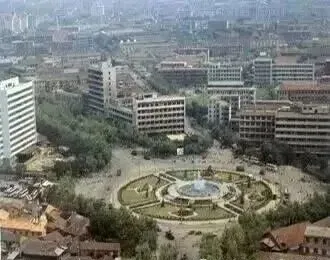 图里的圆心喷泉,是八十年代城市规划的标志,每次运动会、节日游行,广场都能围一圈观众,家里人小时候拿着苏打水就近坐树荫下,喷泉一开孩子全跑去戏水,现在的喷泉再大也没这老一辈留过脚印