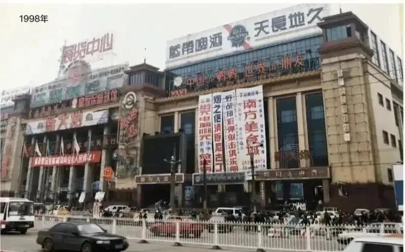 九八年百货中心的门口,满墙广告,大红横幅挂出去,大喇叭就在门口反复播促销,谁路过都不自觉抬头,挤进一拨又一拨买衣服鞋子的热潮