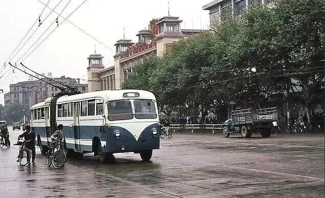 这个蓝白相间的电车,是八十年代南昌街头的日常,拉着两根长钢线滑过,叮铃铃一响就是来报站,骑自行车、推车去赶集的,常爱紧着电车屁股后边跟,司机一回头喊一句“小心点”,街上热闹也不堵,那时候觉得南昌就是要这么大气