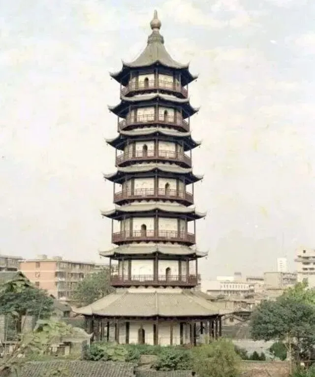 这个有点像被树抱住的高塔,就是老南昌有名的乌塔,塔身斑驳,顶上长着一蓬绿叶,妈妈指着照片说,一眼望去最显眼的就是它的弯顶,爬到塔下抬头望,头晕目眩,大人总爱讲这座塔的故事,听了又忘,但心里始终记着这不规则的老地标