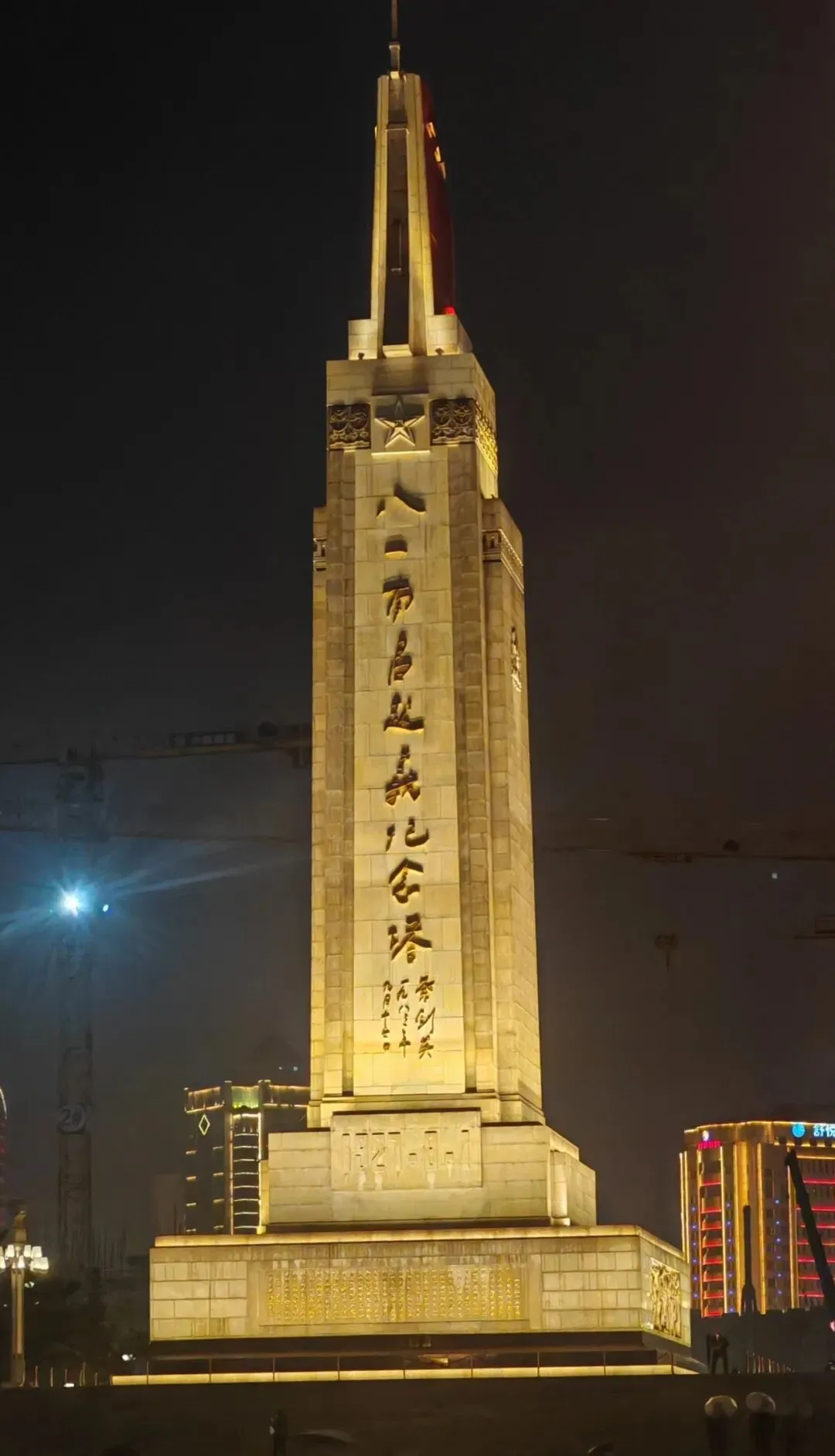 从博物馆出来,行至八一广场,雨丝轻拂,纪念塔愈发巍然矗立。53.6米高的塔身镌刻着金色大字,基座浮雕再现着起义的峥嵘岁月。仰望这座丰碑,仿佛穿越回1927年那个改变命运的时刻,深刻体会到“军旗升起的地方”沉甸甸的分量。雨水顺着石阶流淌,似在洗刷尘埃,又似在延续着城市不屈的红色记忆。