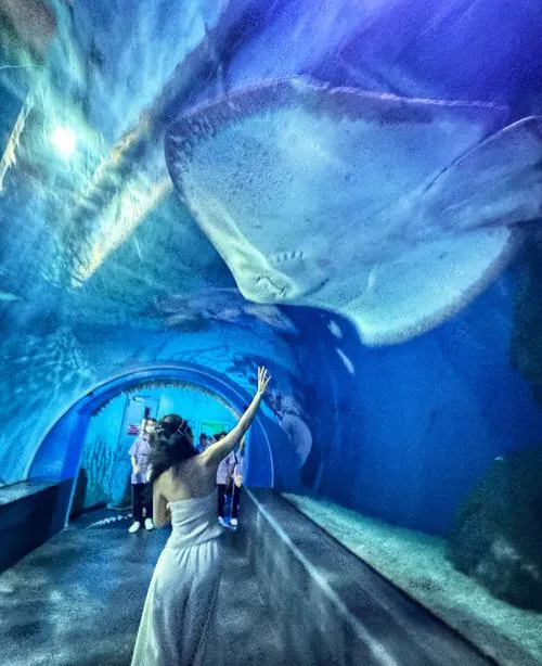 馆里最吸引小孩的是海底隧道和水母展区,海底隧道那种被鱼群包围的感觉,小孩子都喜欢,水母展区灯光做得不错,拍照也好看。不过海洋公园有个缺点,就是商业氛围比较重,到处都是让你买纪念品、拍照留念的地方,这种时候你得提前跟孩子说好规矩,不然容易闹。