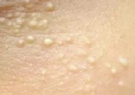 相似点:多发生在眼周,呈肤色或淡黄色小颗粒。