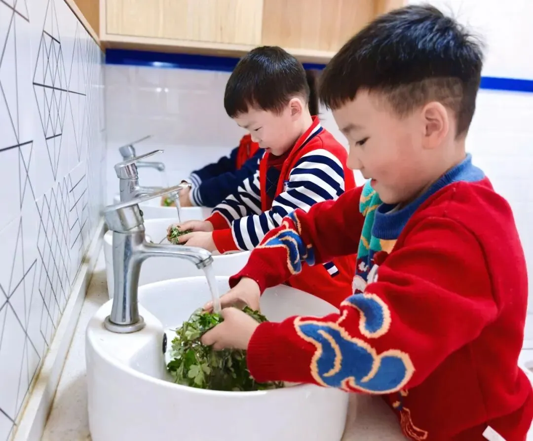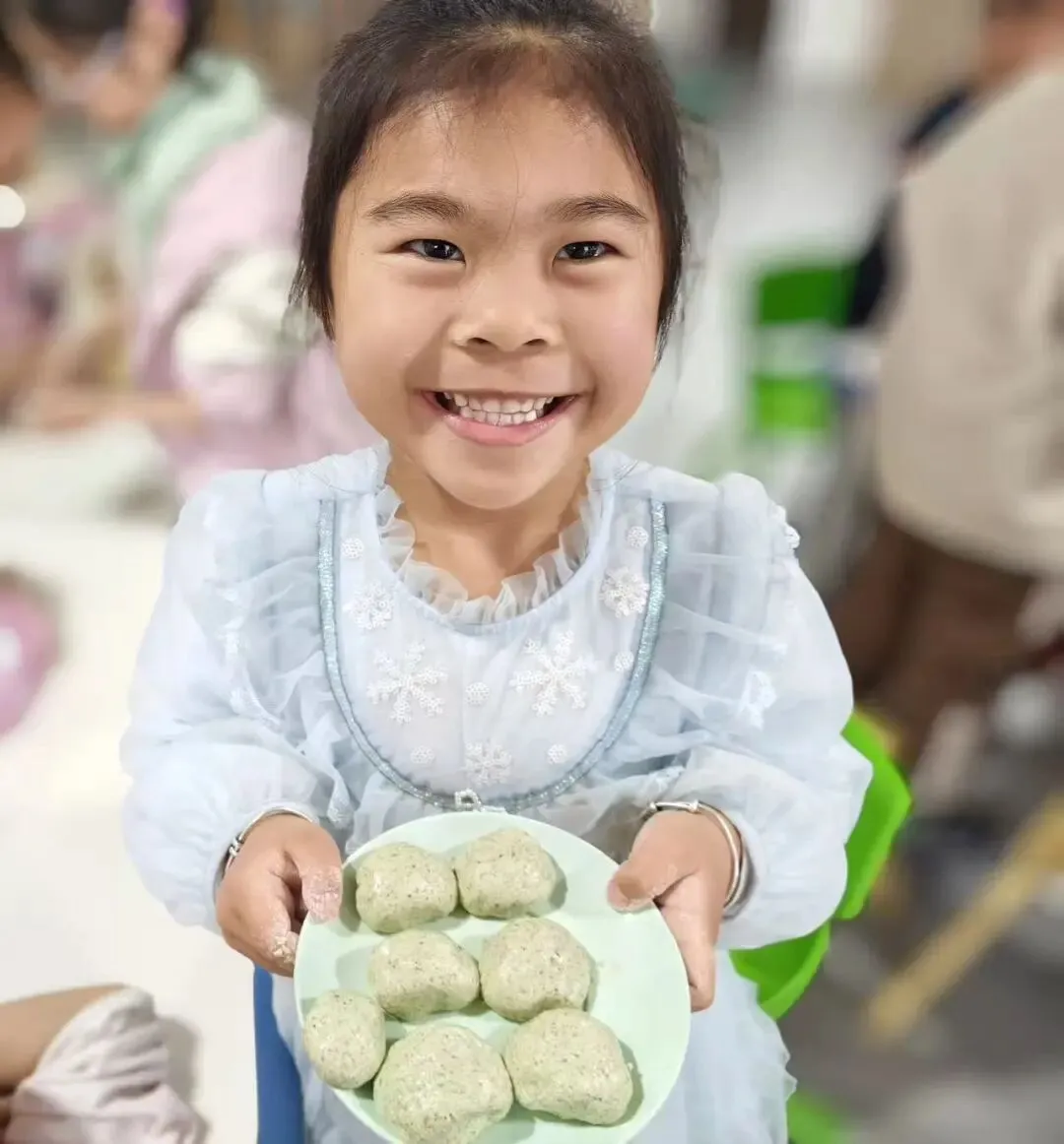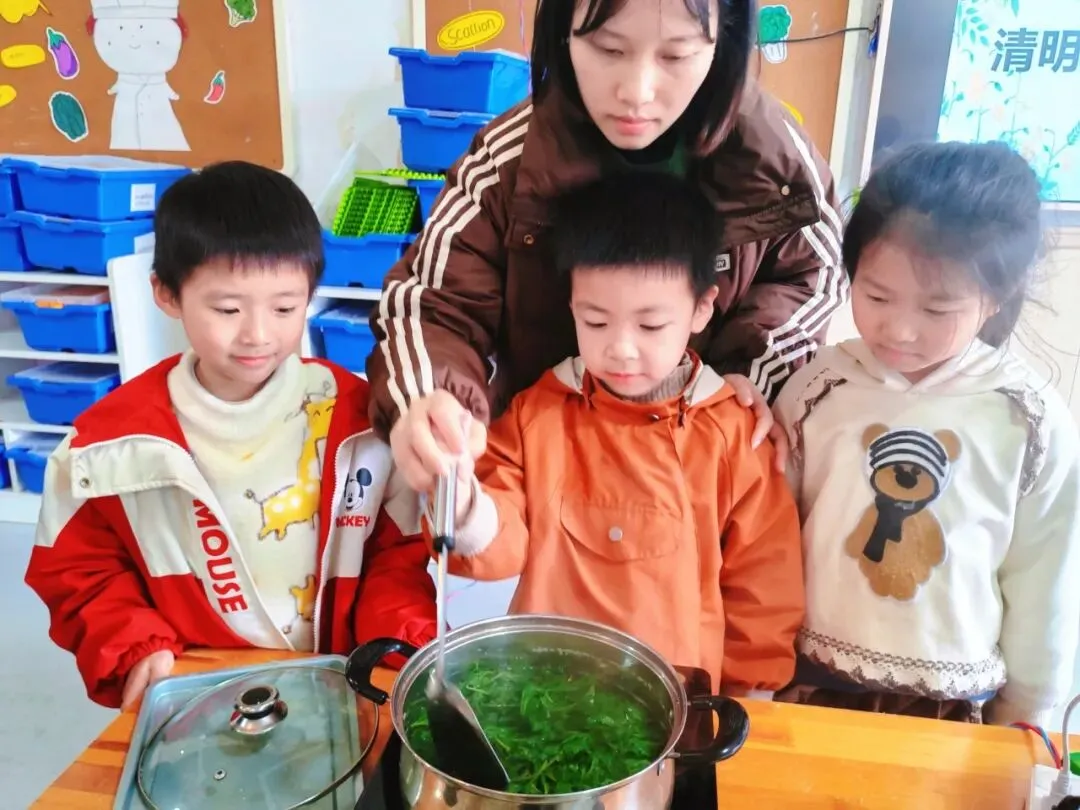 从清洗艾叶、焯水捣汁,到和糯米粉揉成翠绿面团,再到动手包馅、塑形,孩子们全程兴致勃勃地参与其中。一双双小手认真揉搓、小心包裹,将春日的生机与对传统的感知,都揉进一个个软糯的艾粿里。在亲手制作的过程中,孩子们不仅锻炼了动手实践能力,更真切感受到清明传统食俗的魅力,体会到劳动带来的快乐与成就感。