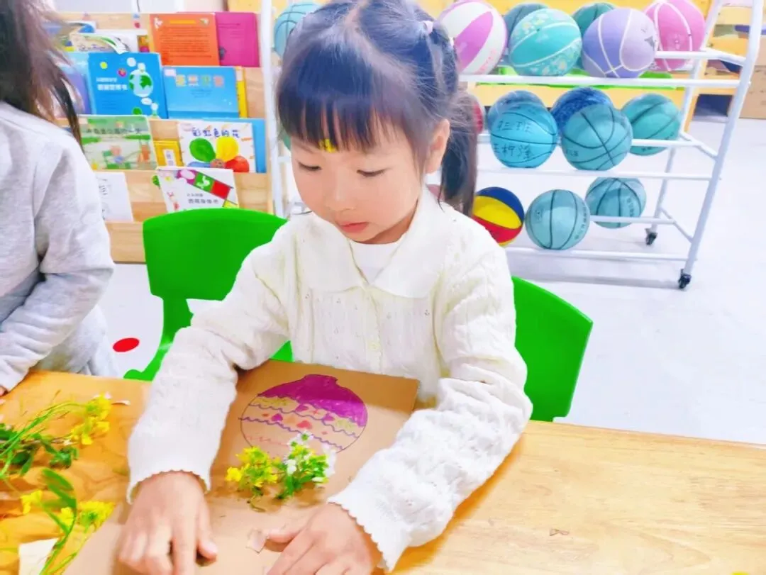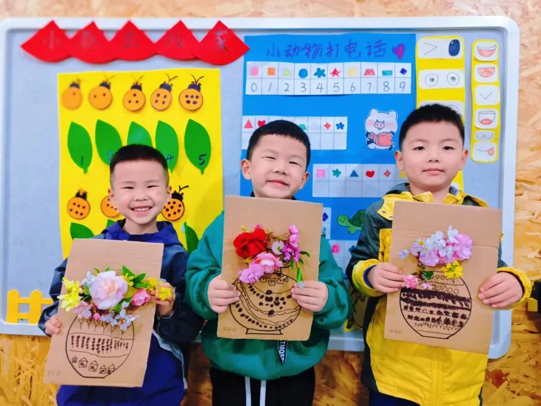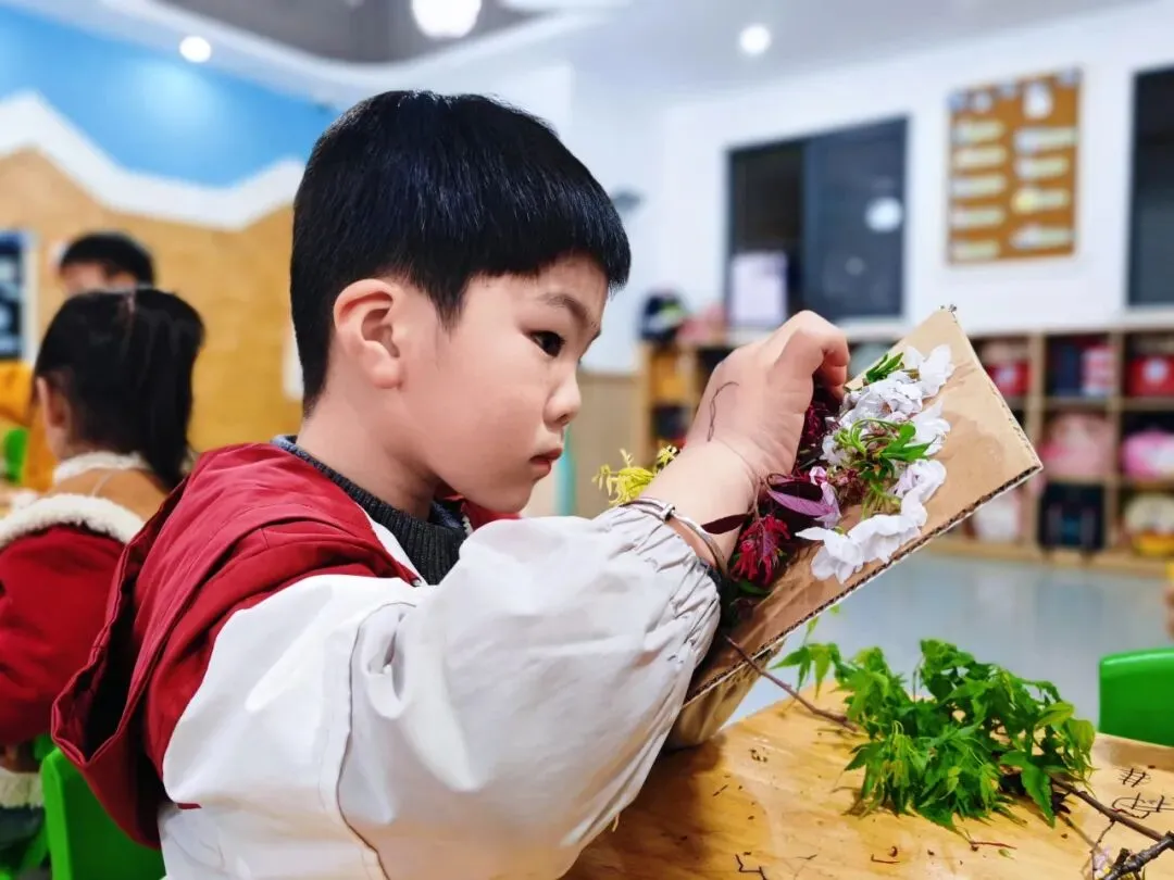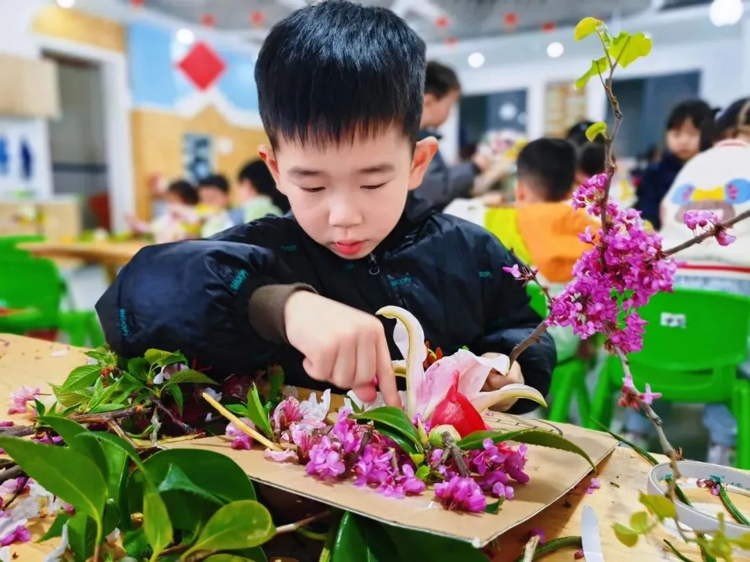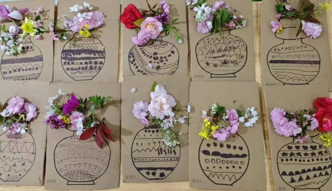 本次活动以“变废为宝”为理念,利用废旧纸壳,制作出独一无二的插花底座,孩子们将自己采摘的鲜花精心搭配、错落插入。他们专注地摆弄花枝,根据自己的审美创意布局,用一朵朵鲜花勾勒出春日美景,也读懂了清明插花寄托思念、缅怀先辈、珍爱生活的节日内涵。废旧材料与鲜花碰撞出别样的美感,既培养了孩子们的环保意识,又让他们在动手创作中感受传统节日的仪式感。