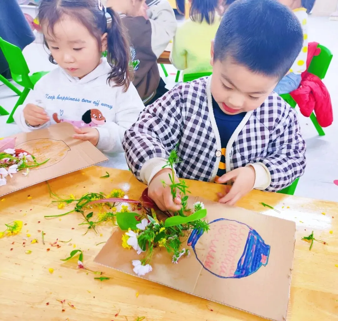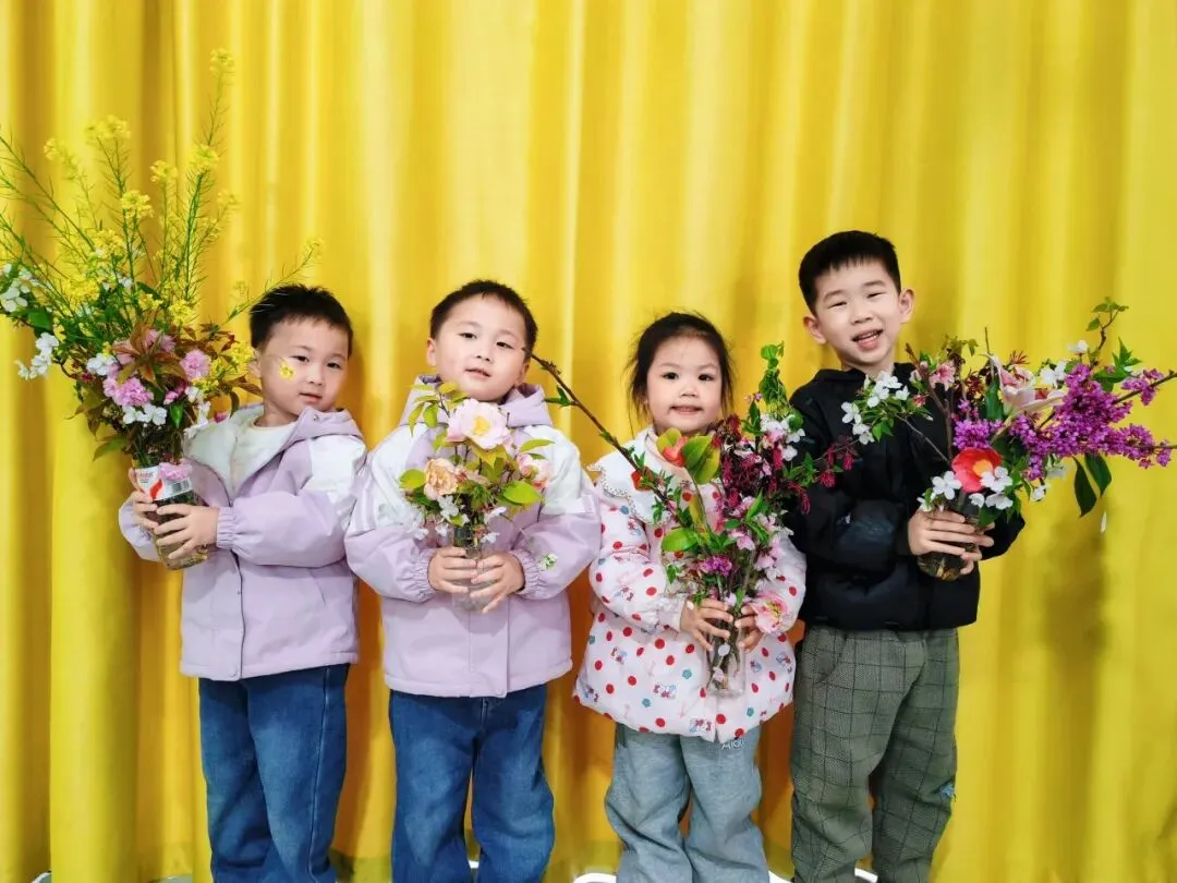 清明插花,寄情于春,中班的宝贝们以别样的方式致敬传统节日。活动前,孩子们亲自走进户外,采摘下新鲜的花朵,小心翼翼地带到幼儿园,满怀期待地开启这场创意插花之旅。