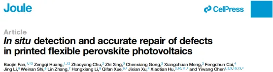 南昌大学胡笑添&江西师范大学陈义旺&华南理工大学薛启帆Joule:通过原位缺陷检测与精准修复实现高效稳定的印刷柔性钙钛矿光伏器件