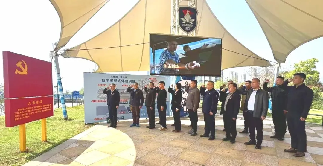 参观现场,全体党员面向鲜红的党旗,举起右拳,由支部书记魏海华领誓,庄严地重温了入党誓词,彰显了“坚定信念、听党指挥、百折不挠、不怕牺牲”军魂内涵。随即全体队员在南昌舰上列队,面向军旗,重温了退役誓词。“……若有战、召必回、战必胜!”的喊声久久回荡在南昌舰上空。