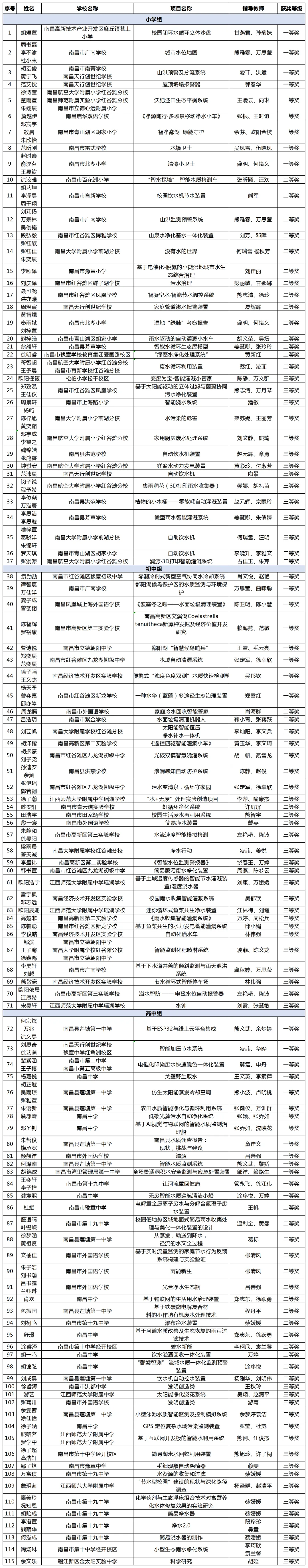 2026年1-3月,市生态环境局、市教育局、市科技创新局、市水利局联合主办了2026年南昌市中小学校水科技发明比赛活动。经主办单位组织专家对参赛作品进行严格评审,共评选出一等奖74件、二等奖124件、三等奖167件,共计365件作品获奖,并评选出优秀组织单位10个,现予以公示。公示时间:2026年4月3日-4月9日,公示期间,如对获奖情况有异议或对获奖信息有疑问,请与市生态环境局办公室联系。