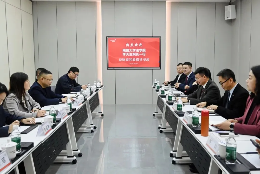 春潮澎湃,泰启未来。2026年4月2日,为了搭建理论与实践融合发展的优质平台,南昌大学法学院院长李天生,党委委员、副院长刘雪岚,党委副书记王浩,党委委员、法律学系主任黄娅琴,学科办主任陈亮,学科办副主任曹蒙瑶等一行莅临我所参观访问,并开展座谈交流。我所党支部书记、主任张家卿,高级顾问李士林,管委会委员、合伙人李静之,妇女联合会主席、合伙人史慧敏,公益法律服务中心主任、合伙人喻建波,青发委委员吴婷,律师刘磊,律师李钧,监事会监事王杰芳,实习律师郝浪浪、罗云等参加交流活动。