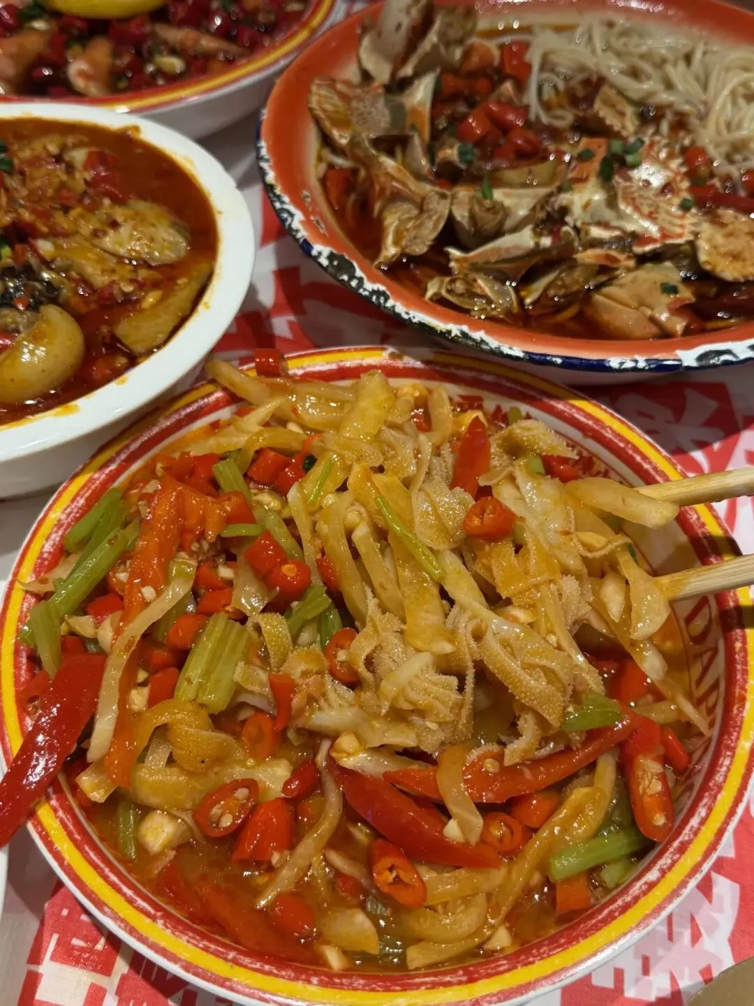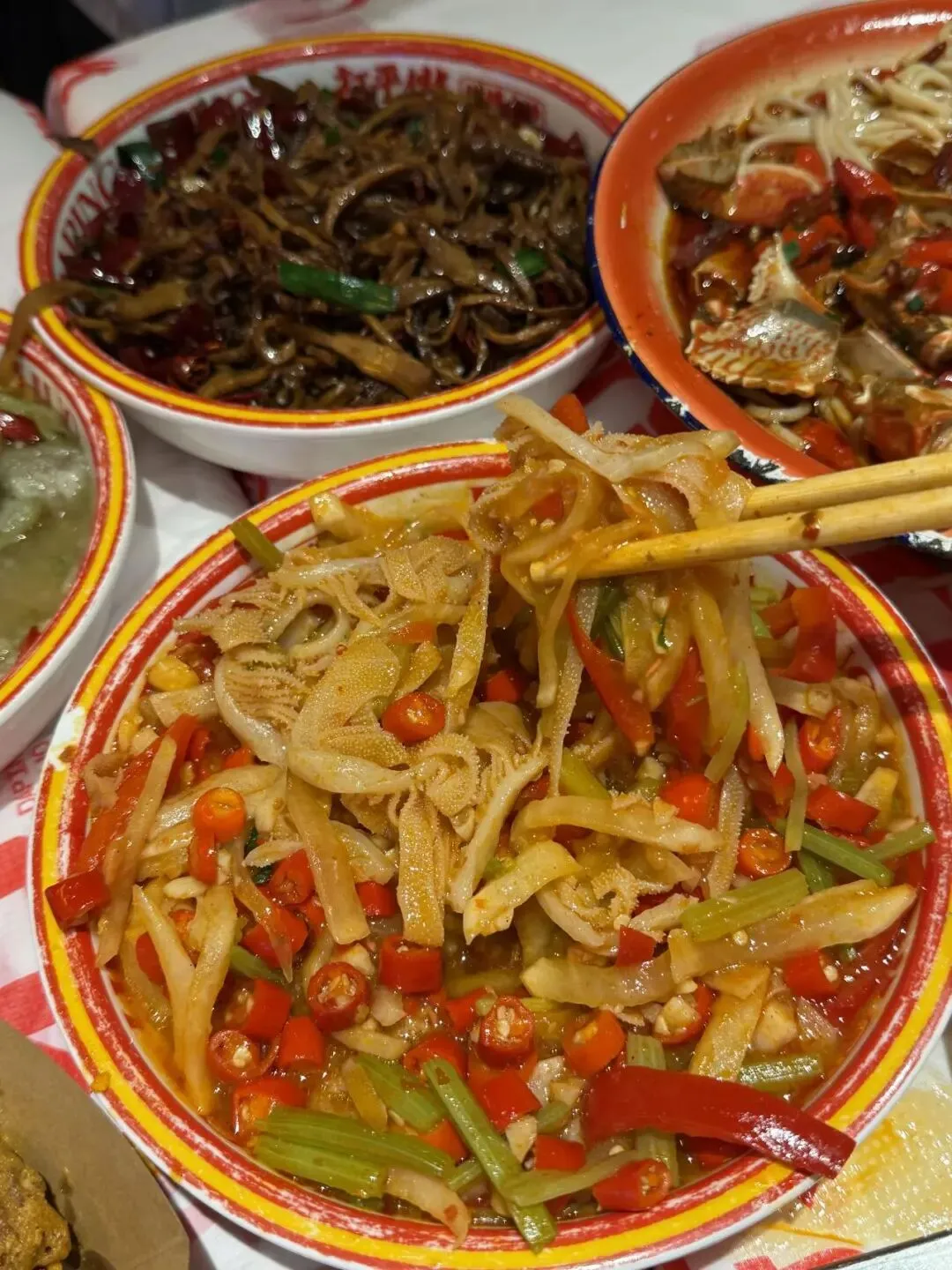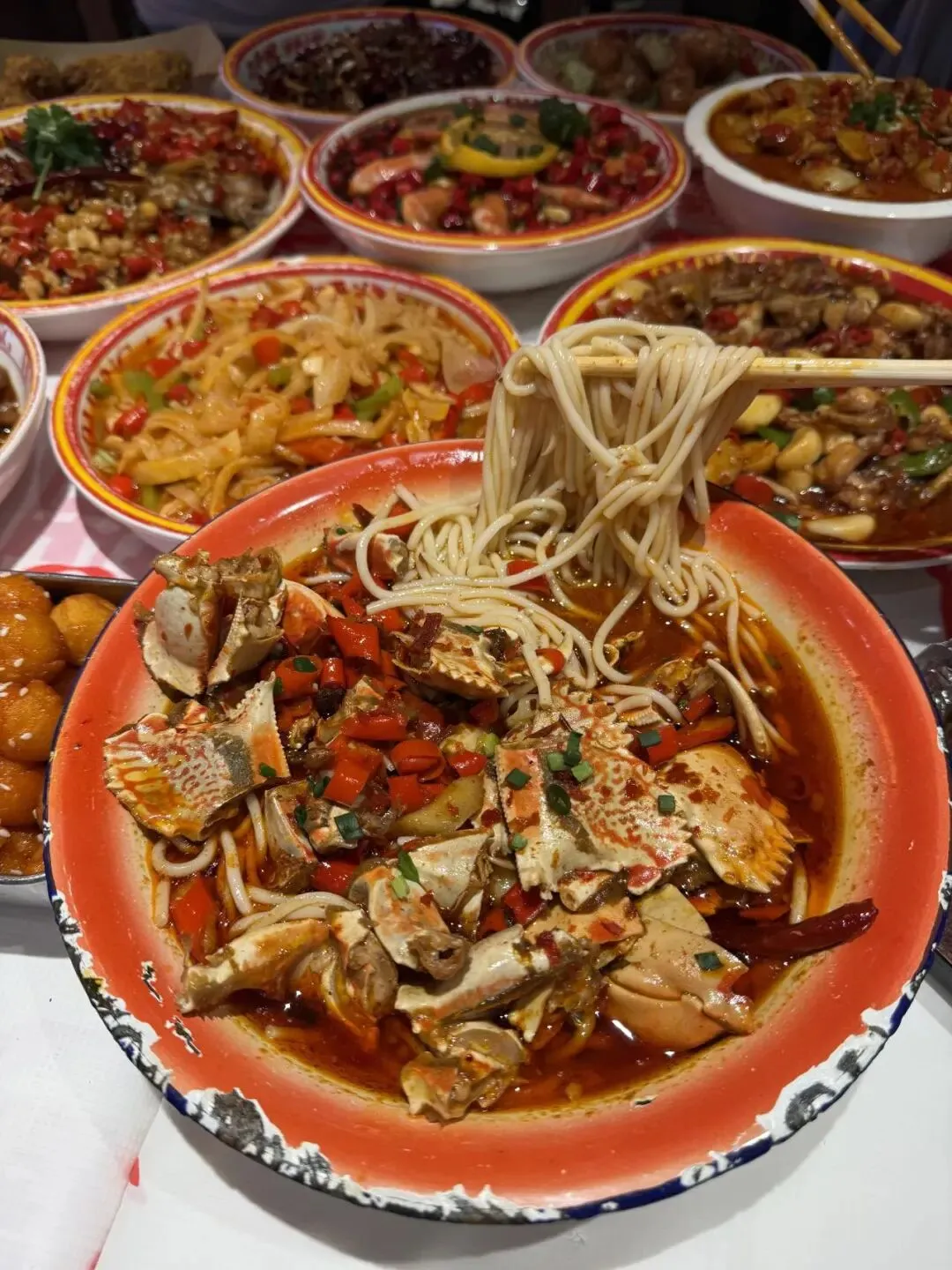 蟹脚拌粉:粉丝吸满蟹香,搭配辣椒葱花爽翻天~