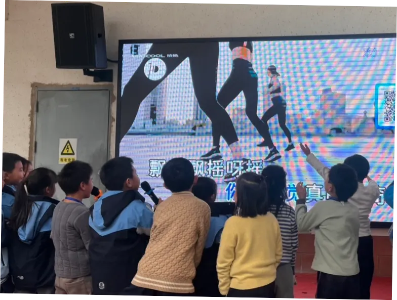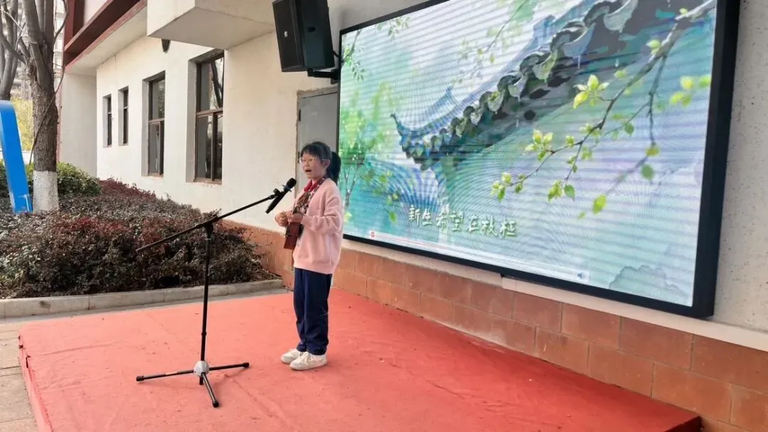 三月,春光明媚,孩子们在这里拉开了一场春日歌会的序幕:有人自信上台,积极点歌,放声歌唱;有人一边唱一边轻轻摆动身体,身心投入,享受其中;有人转起了圈,有人拍起了手;还有几个好朋友挤在一起,你一句我一句地接力唱,笑作一团,笑声比歌声还要响亮。