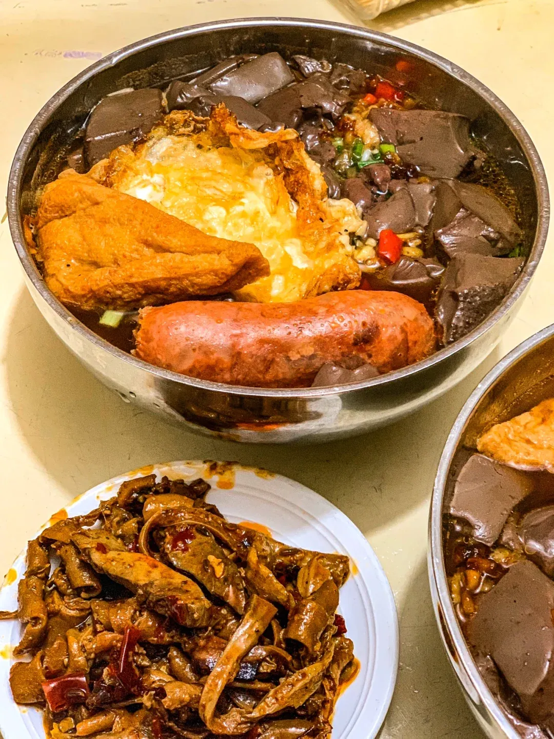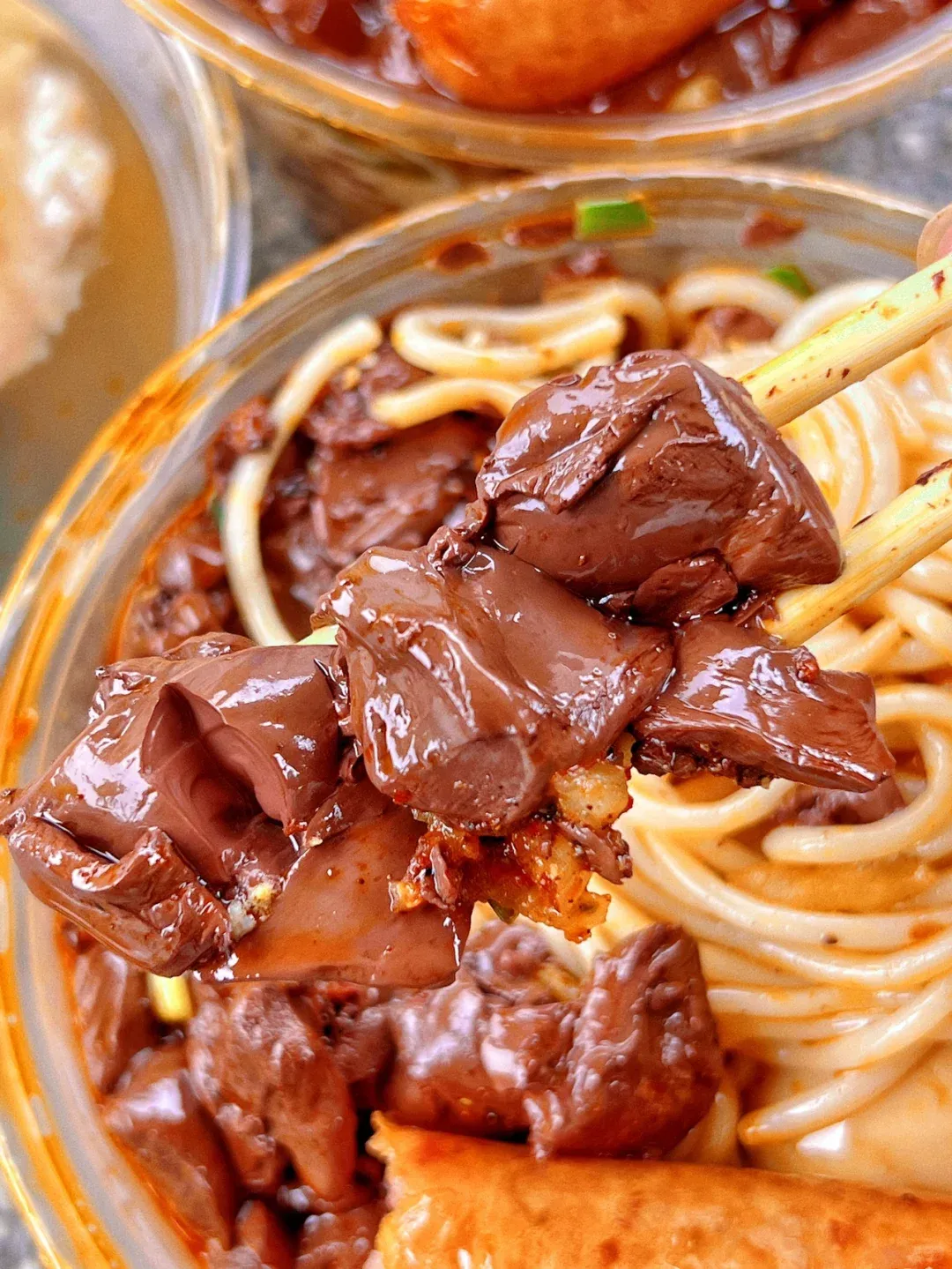 秘制萝卜干、卤心肺、荷包蛋,自制萝卜干脆爽解腻,卤心肺入味软烂,搭配猪血粉口感层次翻倍,是店内食客必加的经典搭配。