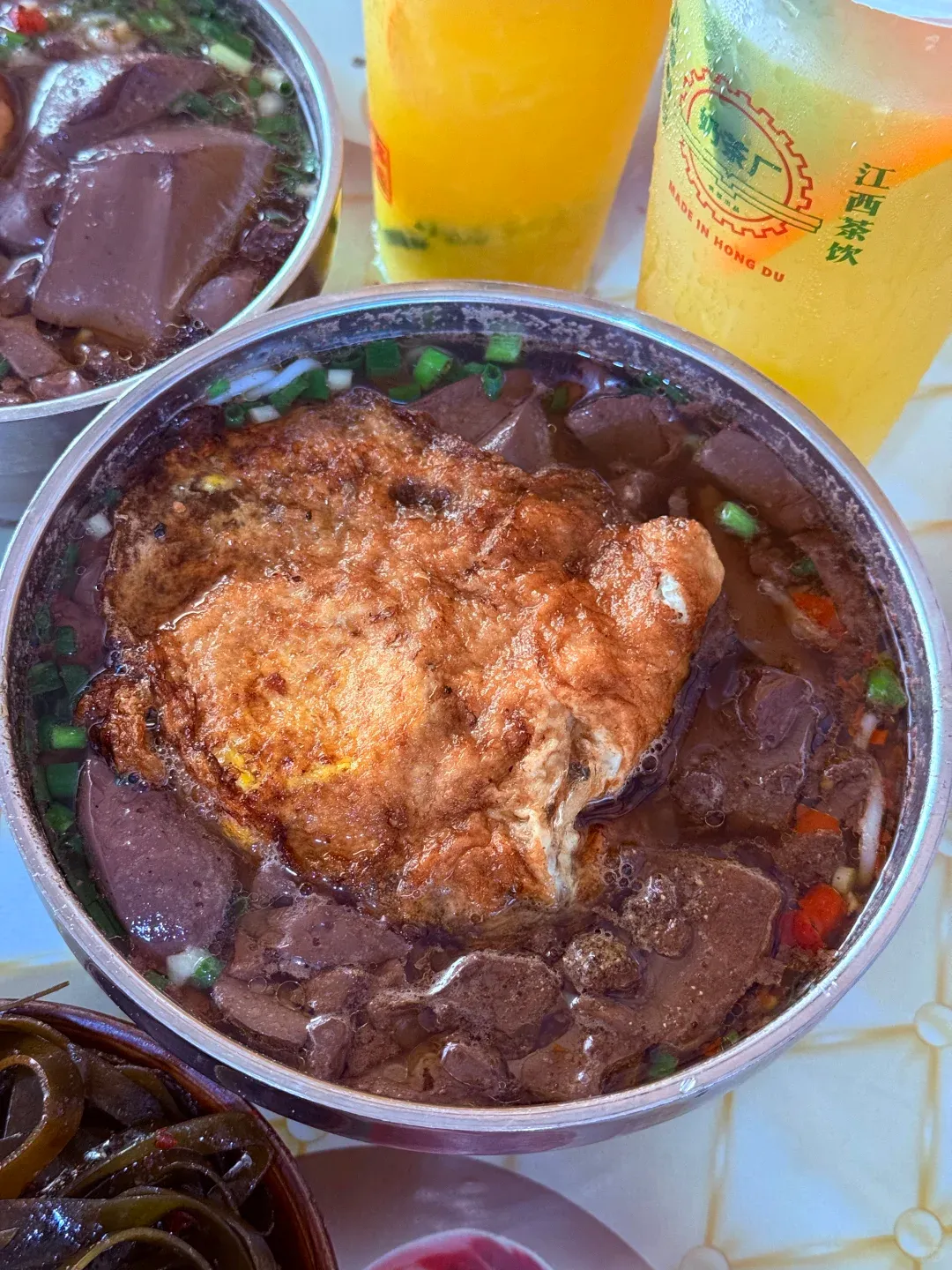 南昌猪血粉界的 “顶流老字号”,传承三代,四十余年坚守老味道,是老南昌人心中无可替代的白月光。猪血嫩滑到筷子一碰就碎,汤底鲜醇,米粉筋道,辣得过瘾,鲜得入味,每一口都是老南昌的原始风味。