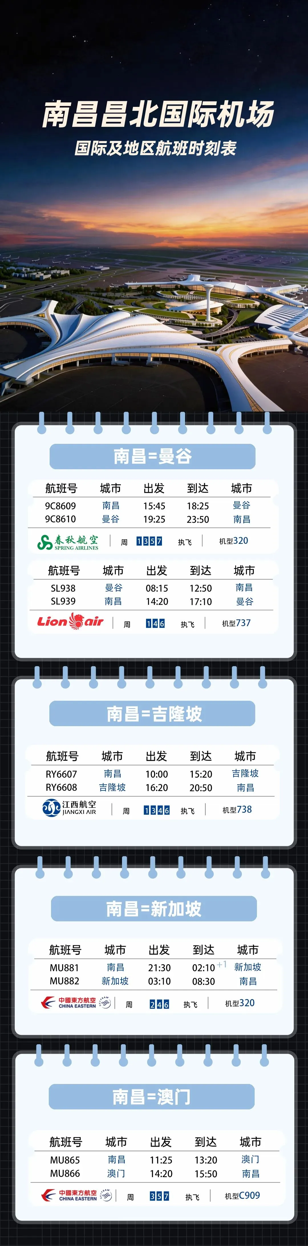 南昌机场国际、地区航班时刻来咯