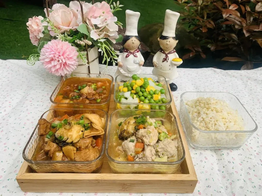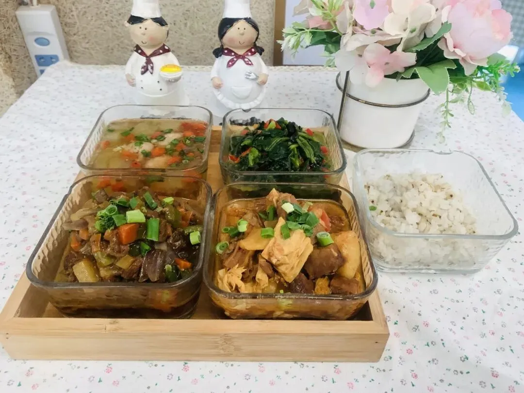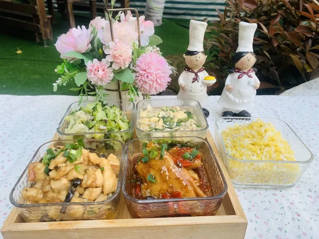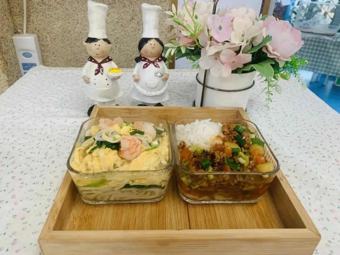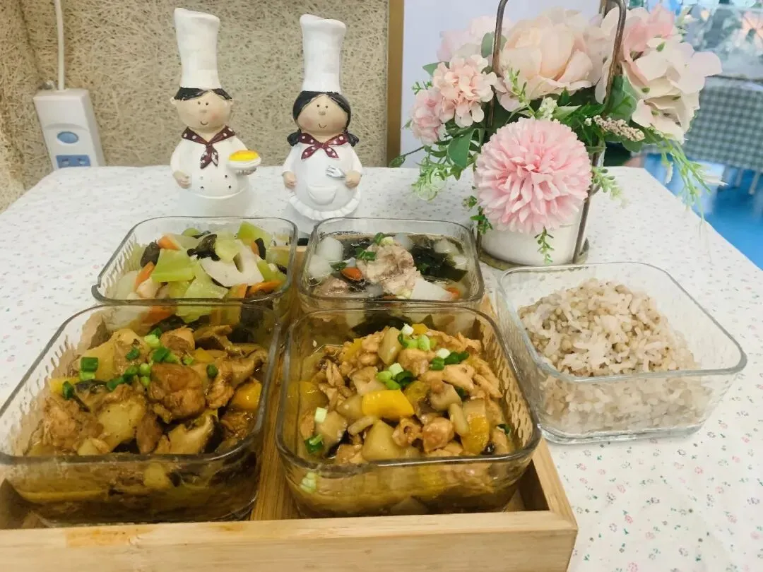 主食:白米饭(大米托小班50g、中班55g、大班60g)