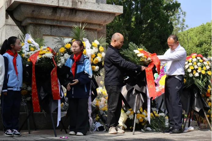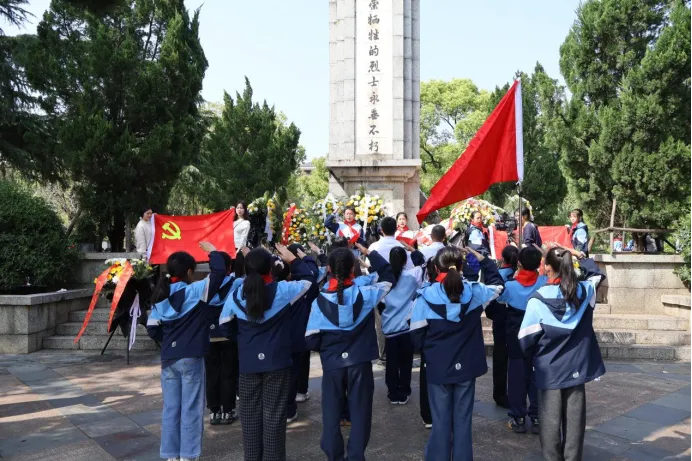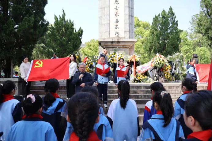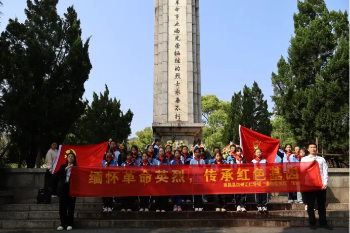 春风送花表哀思,青松滴翠寄深情。2026年4月1日下午,南昌县洪州汇仁学校组织党员教师及优秀少先队员代表,前往莲塘镇人民公园南昌县革命烈士纪念塔,南昌县关工委副主任兼报告团团长高三毛受邀出席活动,开展清明节祭英烈主题教育活动。师生们怀着无比崇敬与肃穆的心情,以最庄重的仪式缅怀革命先烈的丰功伟绩,追忆峥嵘岁月,传承红色基因,厚植爱国情怀。