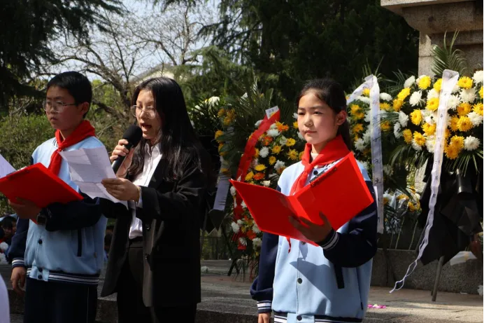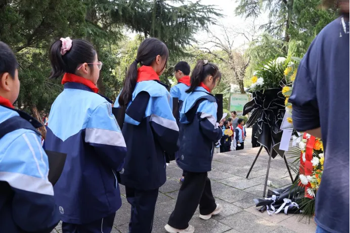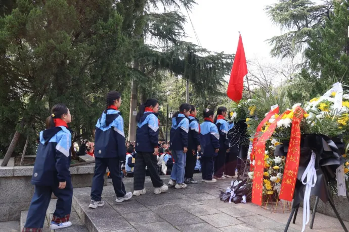 肃穆的乐曲声中,敬献花篮仪式有序进行。党员代表、少先队代表向烈士敬献花篮,师生们依次绕行纪念碑,献上洁白菊花,寄托追思。全场肃立默哀,向为国家和人民献身的英雄致敬。献花结束后,全体人员面向烈士纪念碑,向革命先烈行三鞠躬礼,铭记历史,告慰英魂。