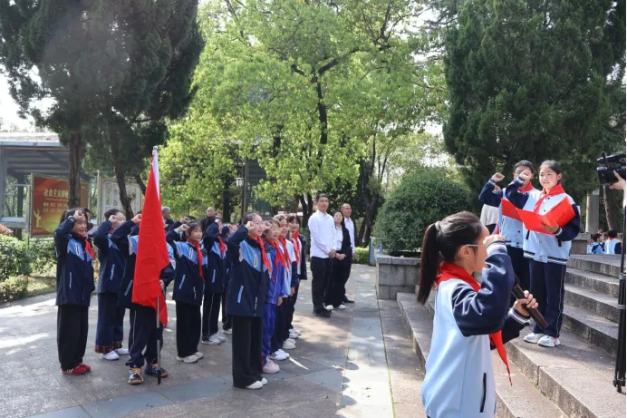 随后,仪式现场举行重温誓词环节:党员教师们面向党旗,举起右拳,在领誓人带领下重温入党誓词,一句句誓言铿锵有力,展现出教师们坚守教育初心、勇担育人使命的责任与担当;少先队员们在大队长的带领下,庄严宣誓,重温入队誓词,字字句句饱含着对党、对祖国的无限热爱,铿锵的呼号声,展现出少年儿童昂扬向上的精神风貌。