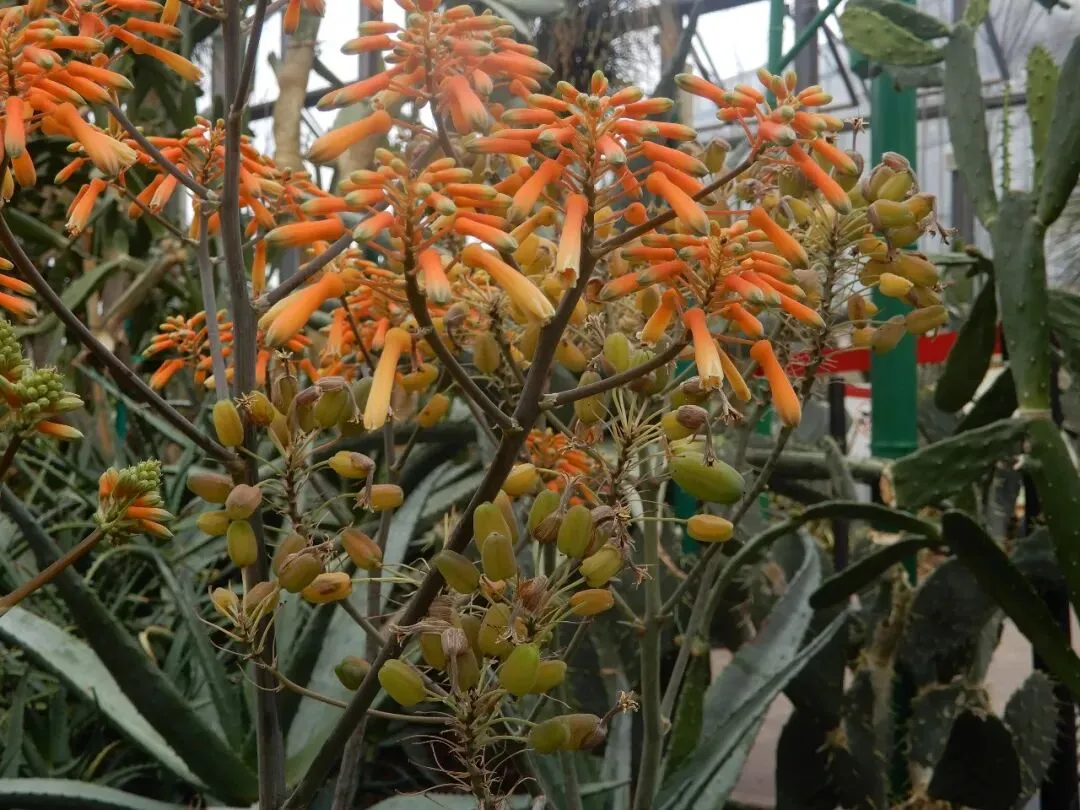 沙洲馆里各种芦荟都在竞相开放,拍不赢,根本拍不赢......