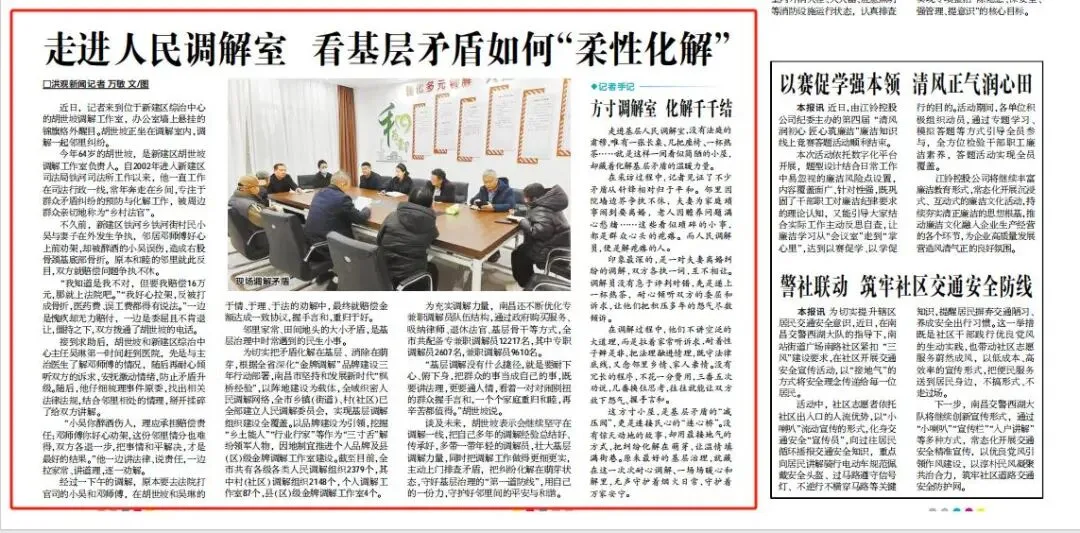 4月2日,《南昌日报》刊发《走进人民调解室 看基层矛盾如何“柔性化解”》一文,让我们一起来看看吧!