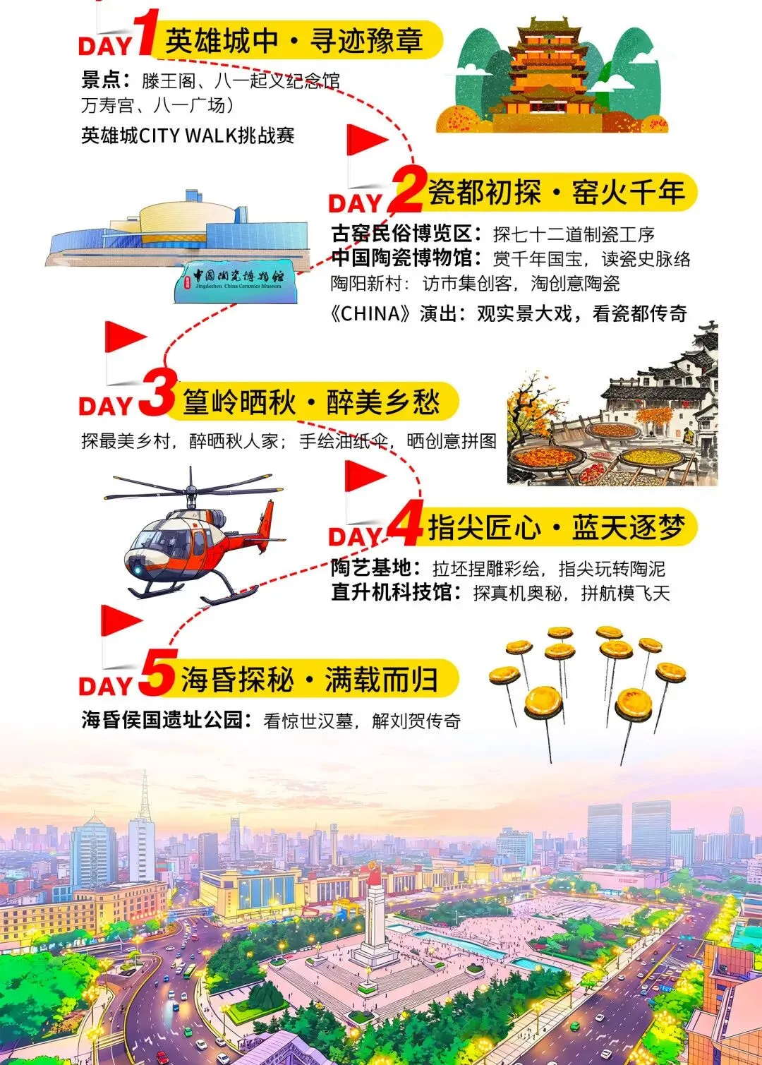 走进江南三大名楼—滕王阁,了解其厚重的文化渊源,认知江西名人及历史,领略一江两岸风光。