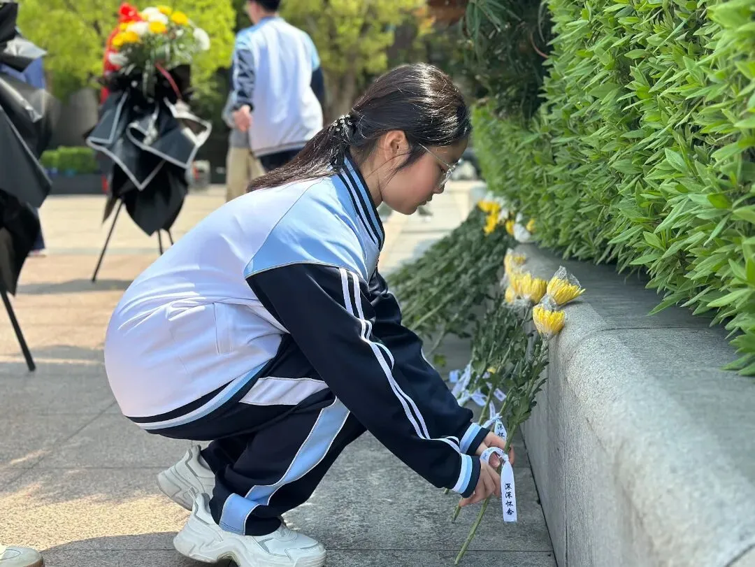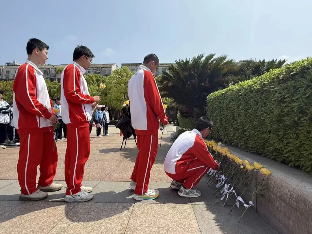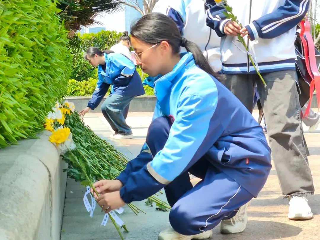 活动现场,师生整齐列队、庄严肃穆。全体人员首先默哀三分钟,以此寄托对革命先烈的深切追思与崇高敬意。随后,同学们有序将鲜花放在纪念碑前,用最朴素的方式,表达对英烈的缅怀与敬意。
