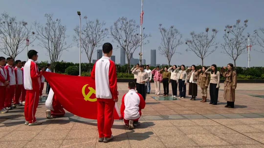 活动最后,全体党员教师面向党旗,高举右拳,重温入党誓词。铮铮誓言铿锵有力,彰显着党员教师不忘初心、牢记使命的坚定决心。