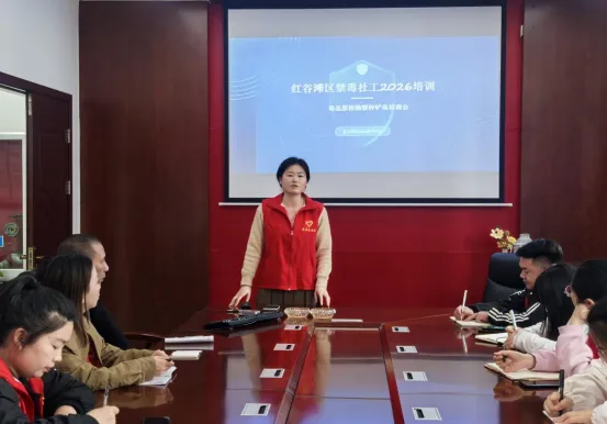 为适应新时期禁毒工作新形势、新要求,进一步加强新时代禁毒社工队伍专业化建设,提升红谷滩区禁毒社会化服务管理效能,2026 年 4 月 2 日,南昌市红谷滩区 626 服务中心组织开展 2026 年上半年禁毒社工业务专题培训,全区禁毒社工参加学习。本次培训紧扣实战、聚焦重点,围绕禁种铲毒专题知识和社戒社康业务知识两大核心内容展开,全面夯实禁毒工作基础。