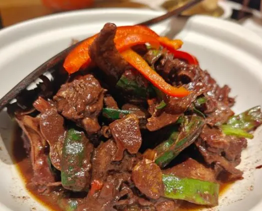 中午建议吃本地小炒,像万载血鸭、辣椒炒肉、藜蒿炒腊肉,咸香里带一点冲劲,配米饭很下口。不是重油重盐的压味,而是锅气顶在前面,越嚼越香。天热时来一碗冬瓜汤,汤一喝,人就醒了。