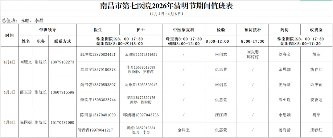 根据《国务院办公厅关于2026年部分节假日安排的通知》精神,结合医院实际,我院2026年清明节放假、门诊及医技科室安排如下: