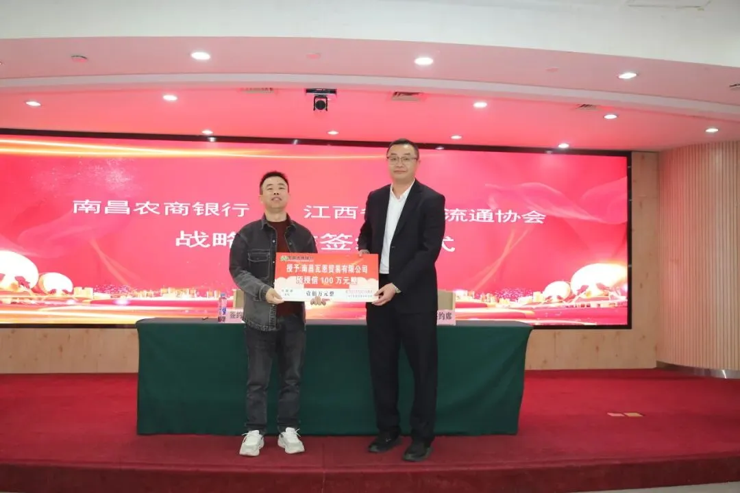 为推动合作快速落地见效,现场还举行了首批贷款意向企业授牌环节。三花酒业、瓦恩贸易、酒旗名酒商行3家企业与南昌农商银行城西支行成功签订银企预授信协议。