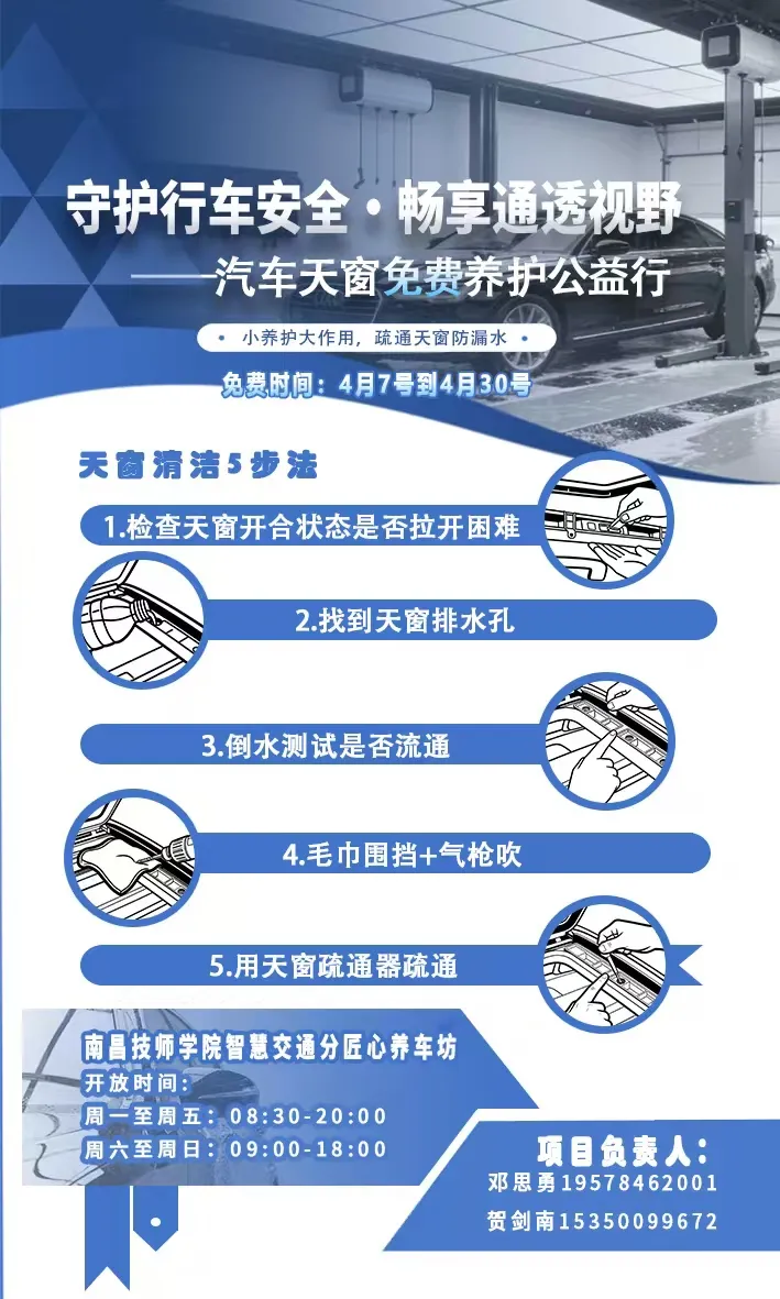 南昌技师学院智慧交通分院汽车天窗免费养护公益活动开始了!