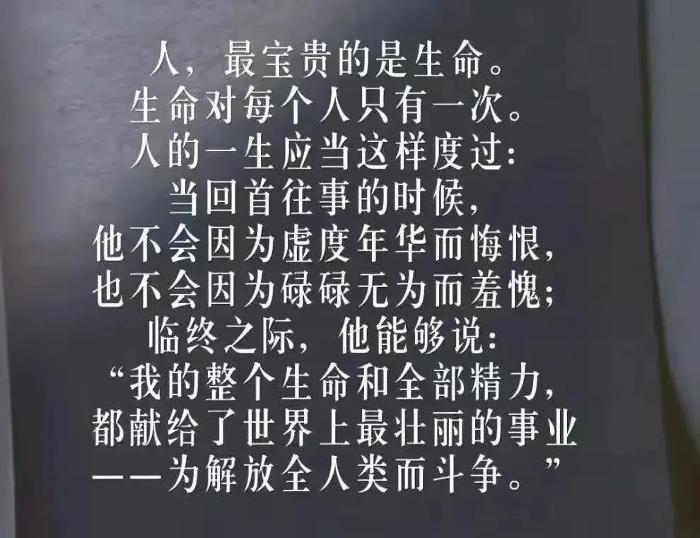 批注:这是全书最震撼人心的段落,也是保尔一生的精神信条。它没有华丽的辞藻,却以最质朴的语言,道出了生命的终极意义——拒绝虚度,锚定价值。对我们初中生而言,“虚度”不是指浪费时间玩乐,而是面对难题时的逃避、面对挫折时的退缩、面对目标时的犹豫;“碌碌无为”也不是平凡,而是放弃了对自我的要求,失去了前进的动力。这句话像一面镜子,让我们时刻反思:当下的每一分努力,是否都在为“不悔恨”“不羞耻”的人生铺路?