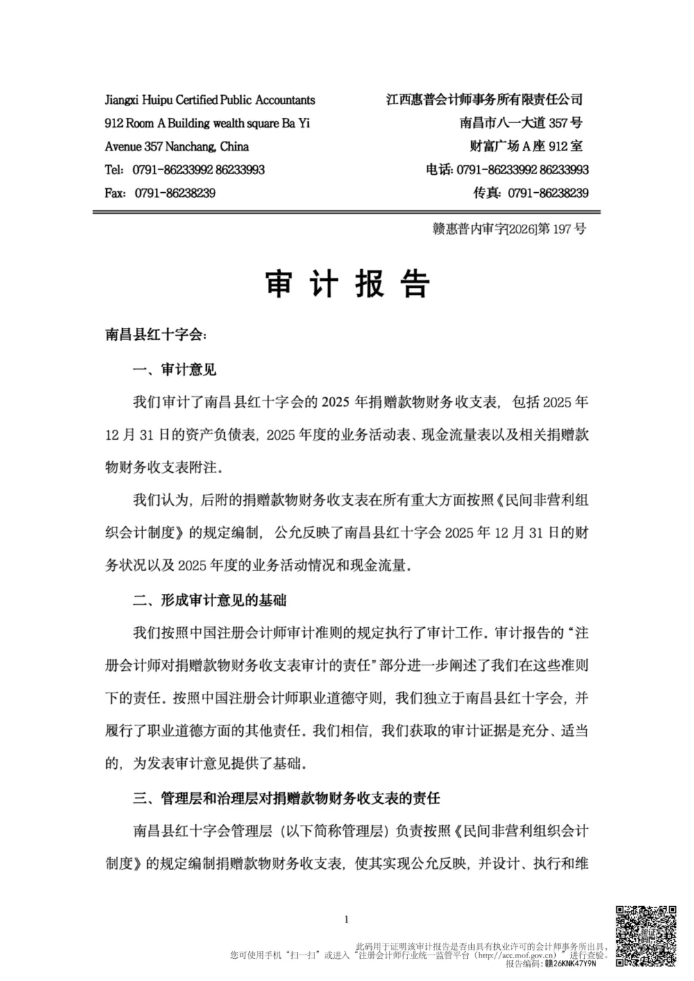 >公示 | 南昌县红十字会2025年度捐赠账户审计报告