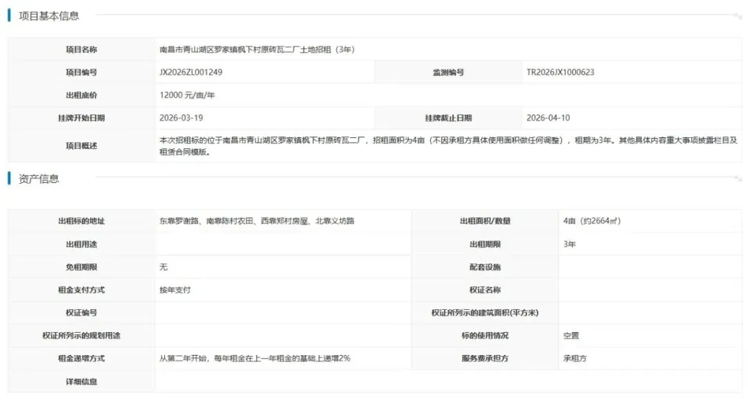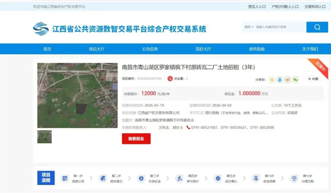 >南昌市青山湖区罗家镇枫下村原砖瓦二厂土地招租(3年)