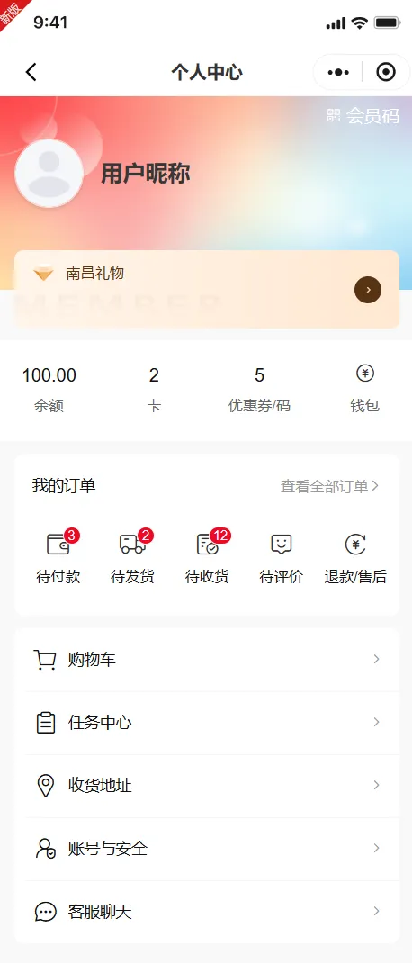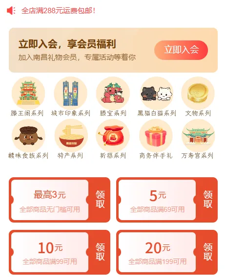 【新增】会员体系:首页点击“立即入会”,成为“南昌礼物”的会员,未来将有不定期会员福利发放,敬请期待;