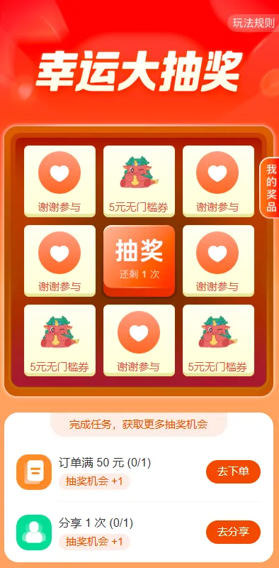 完成下方任务栏中的任务,还可以增加2次抽奖机会哦~
