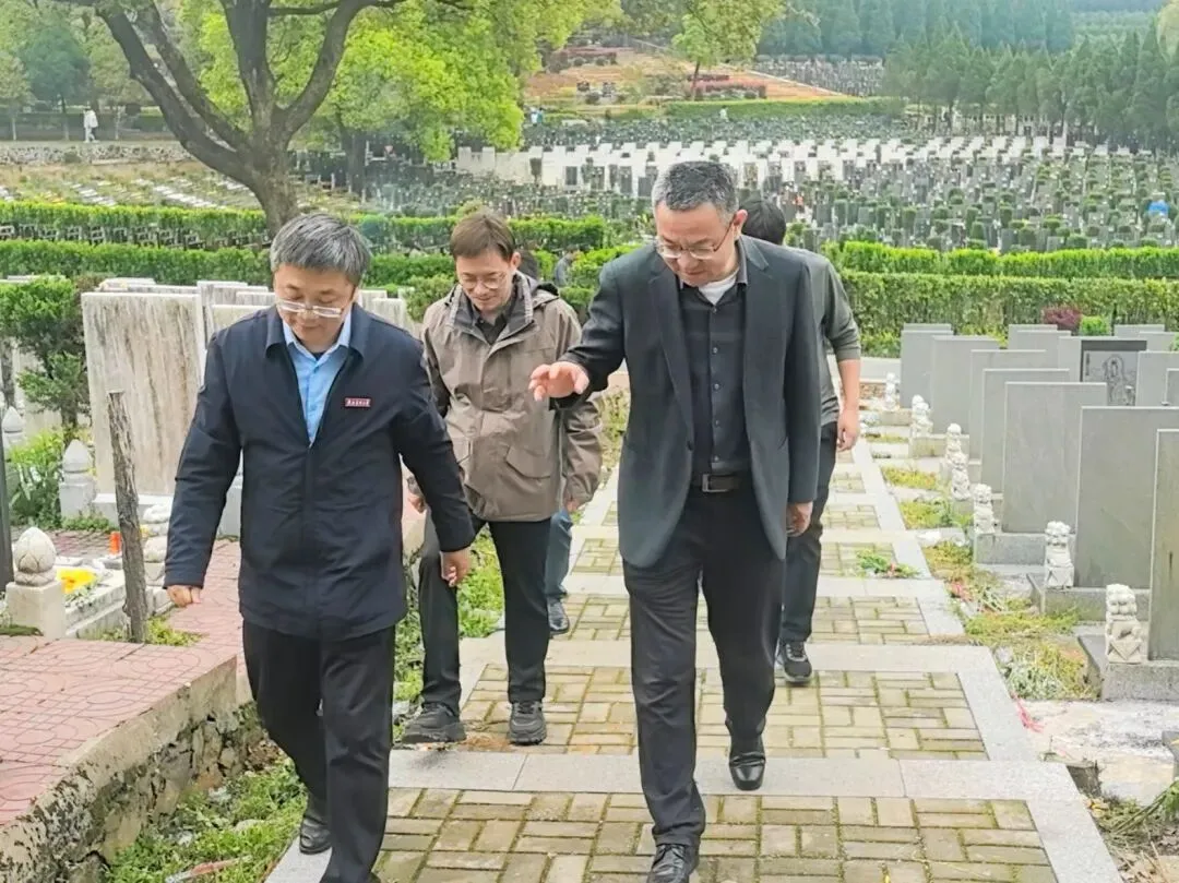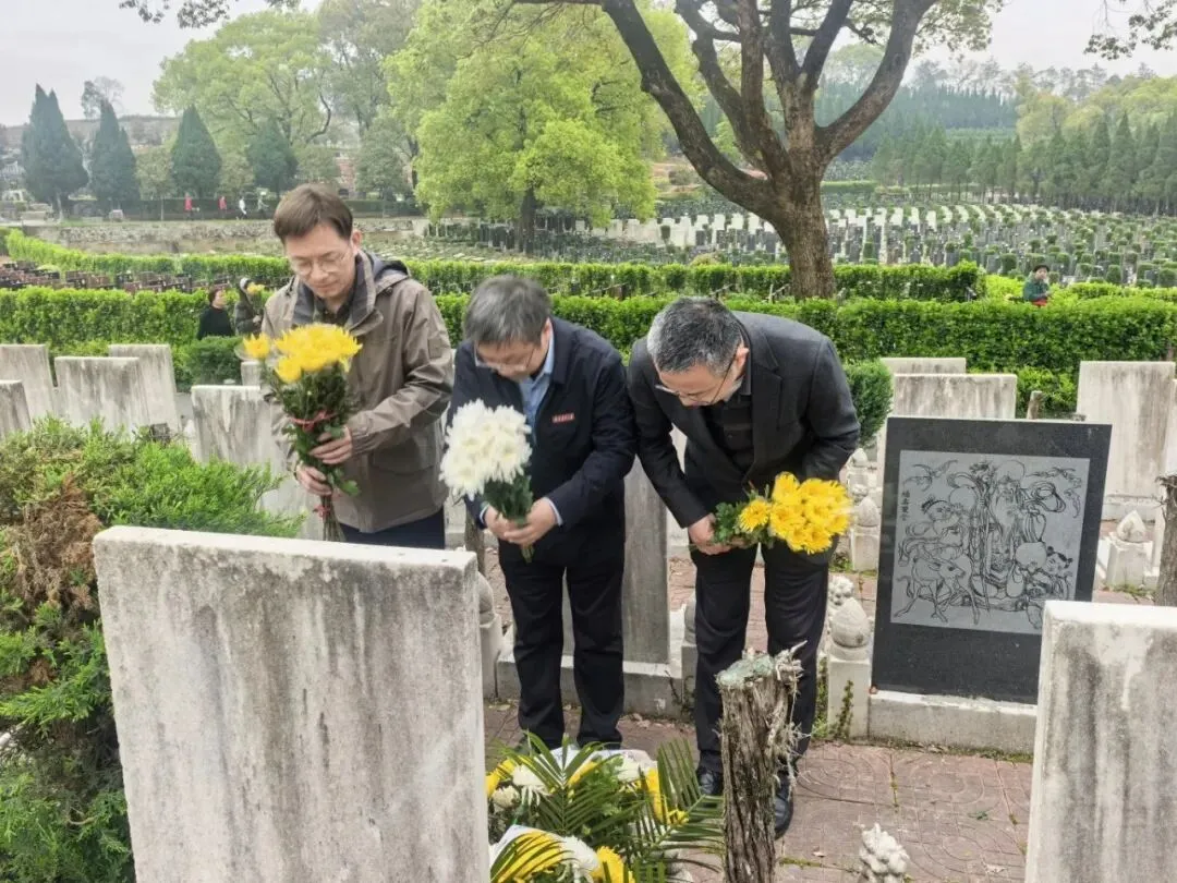 清明时节,松柏凝翠,哀思绵长。为深切缅怀南昌市卫生学校创始人熊慬女士,传承医育人、爱国奉献的崇高精神,纪念熊慬女士诞辰130周年,4月2日,赣南医科大学党委常委、副校长兼第一附属医院党委书记黄孝天,南昌健康职业技术学院(南昌市卫生学校)党委书记、院长黄俭,南昌健康职业技术学院(南昌市卫生学校)党委委员、副院长陈叔儒一同带领两校教师代表,携手前往熊慬女士墓地,共同开展清明祭扫活动,用最庄重的仪式寄托哀思,带着赤诚之心传承先辈的初心。