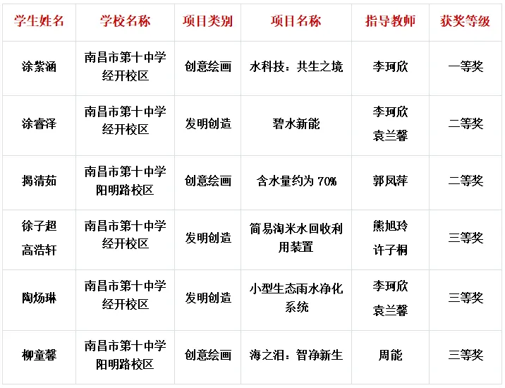 在2026年南昌市中小学校水科技发明比赛中我校学子发挥出色,在发明创造、创意绘画赛道斩获多项一、二、三等奖。